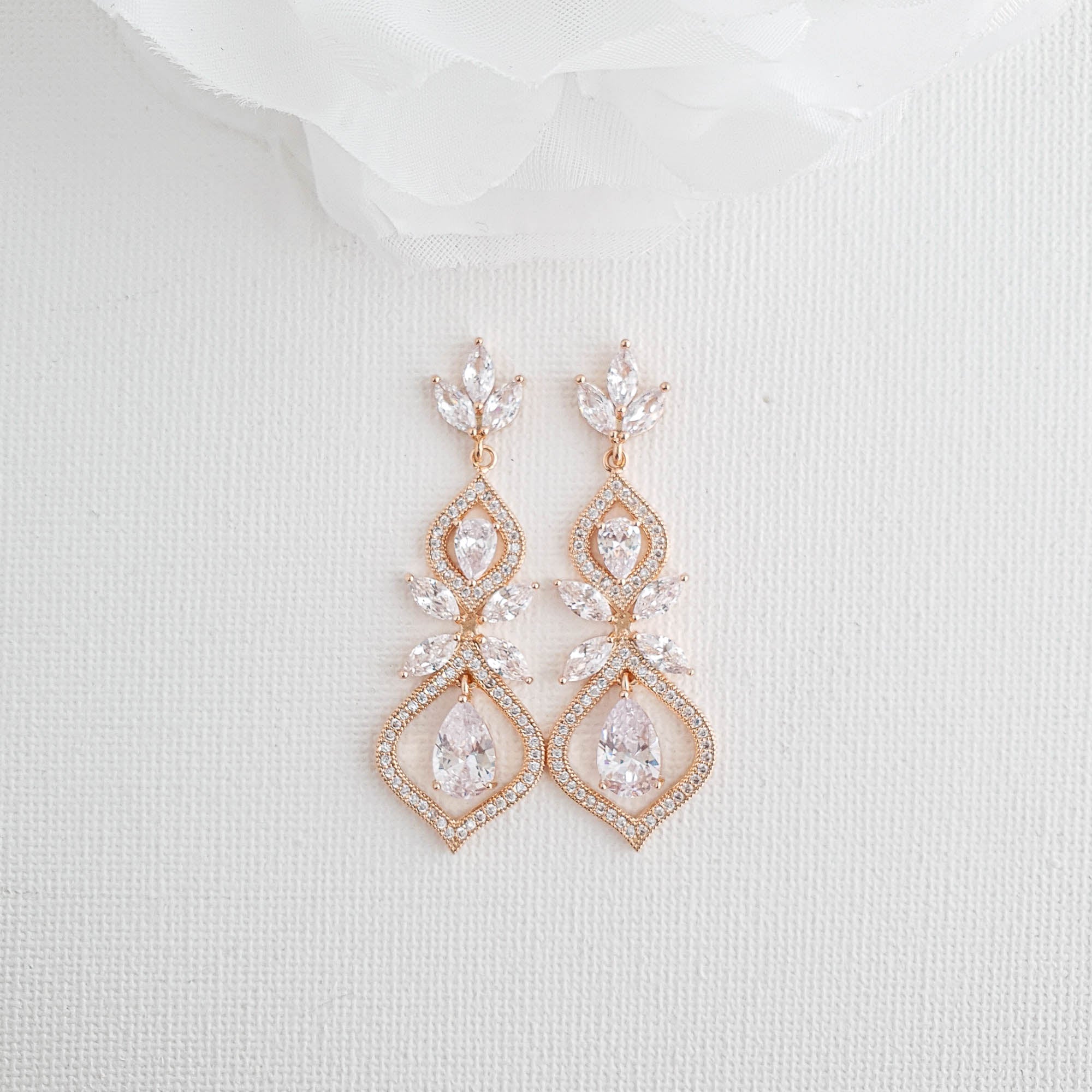 Extra Long Bridal Earrings in Rose Gold- Harriet