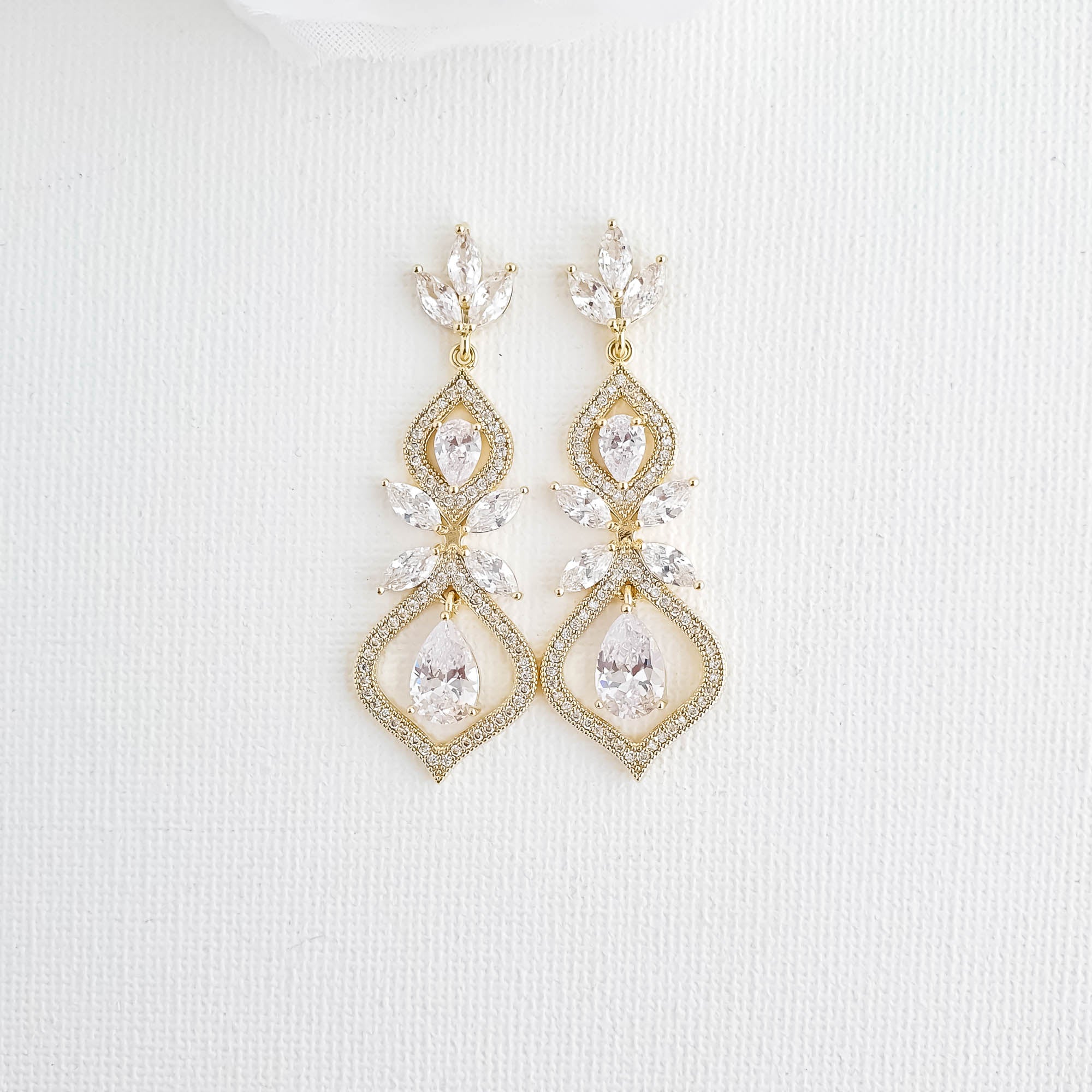 Bride Earrings in Light Gold for Wedding-Anya