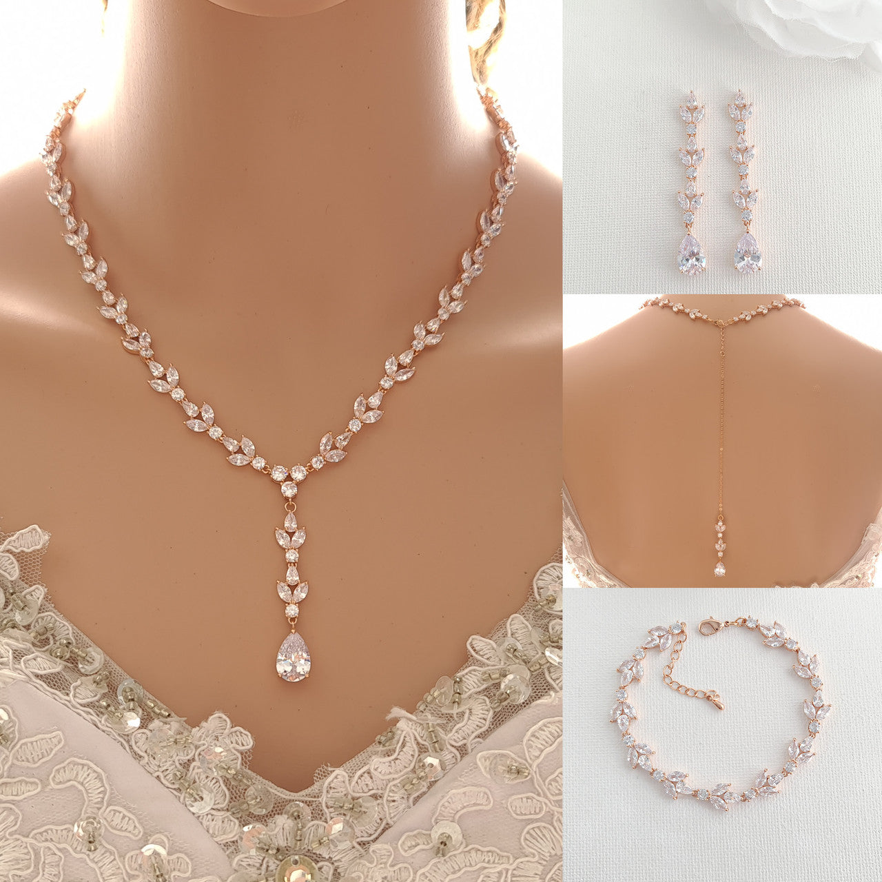 Bridal & Wedding Rose Gold Necklaces, Backdrop, Pendants with Pearls & Cubic...