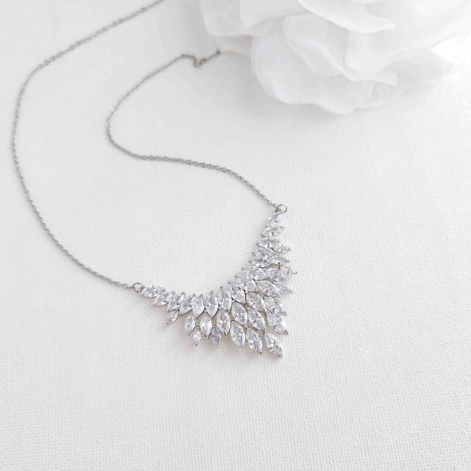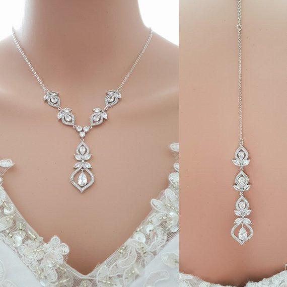 Bridal Pendants & Backdrop Necklaces for Brides & Bridesmaids in Cubic Zirconia Cubic...