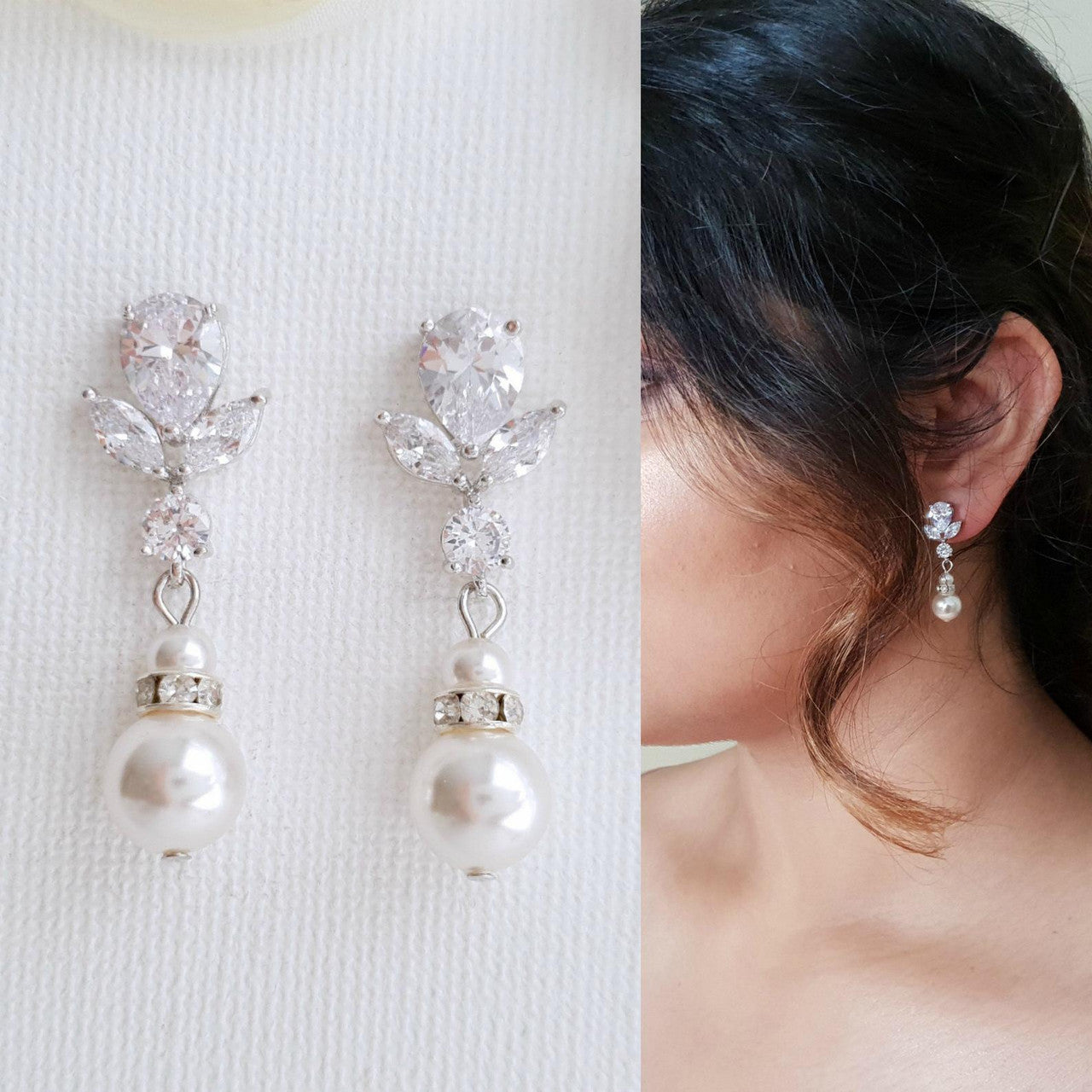 Rose Gold Earrings with Pearl & Cubic zirconia for Brides, Bridesmaids &...