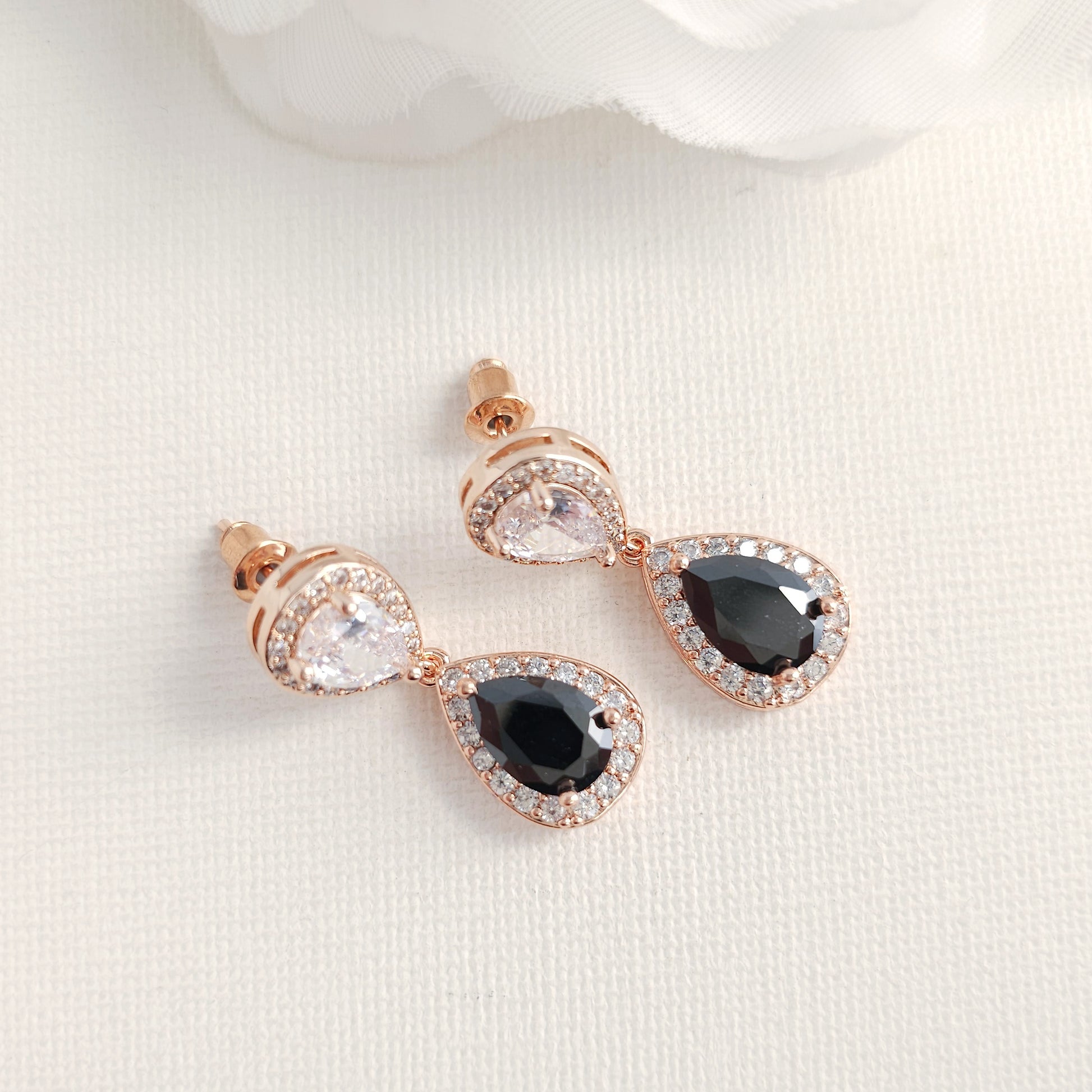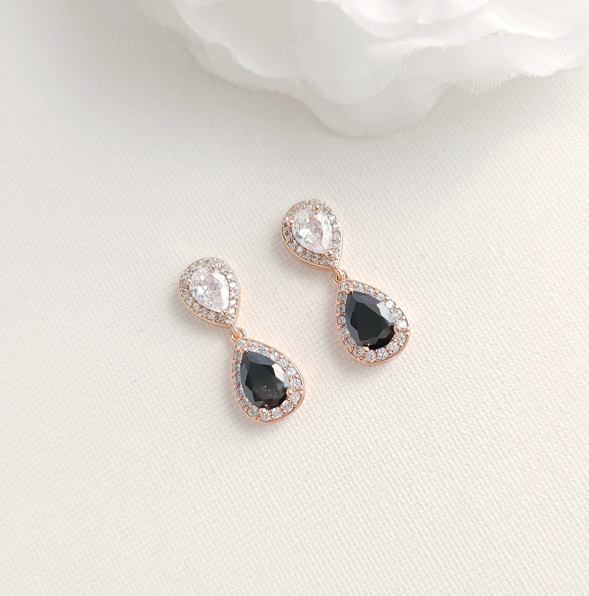Gold & Black CZ Drop Earrings: The Essential Formal & Wedding Accessory-Zoe