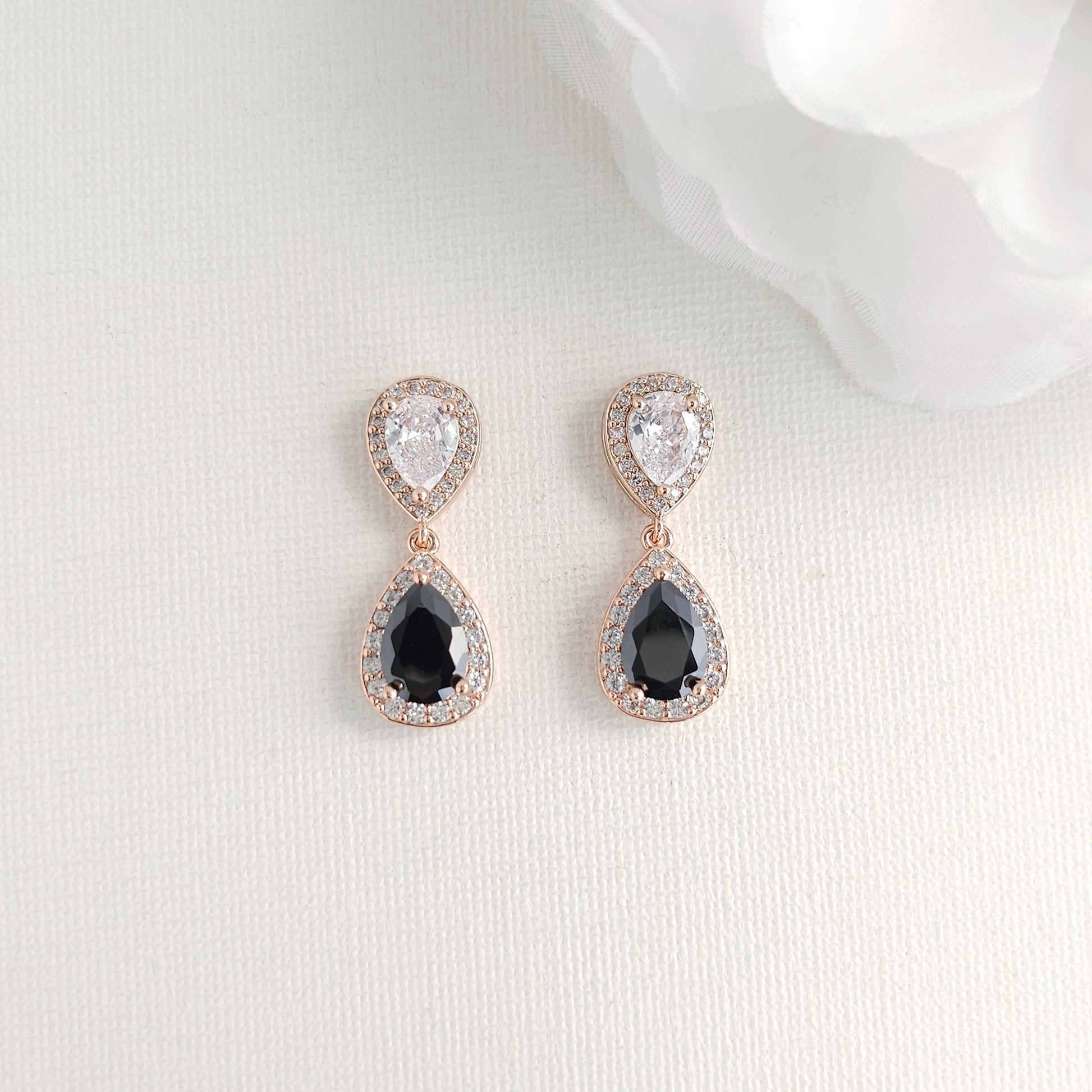 Where timeless romance meets modern drama, these elegant rose gold and black drop clip-on earrings are a stunning choice for your special day or any grand event. The warm, blushing hue of the rose gold setting provides a sophisticated contrast to the deep, mysterious allure of the black teardrop stone.