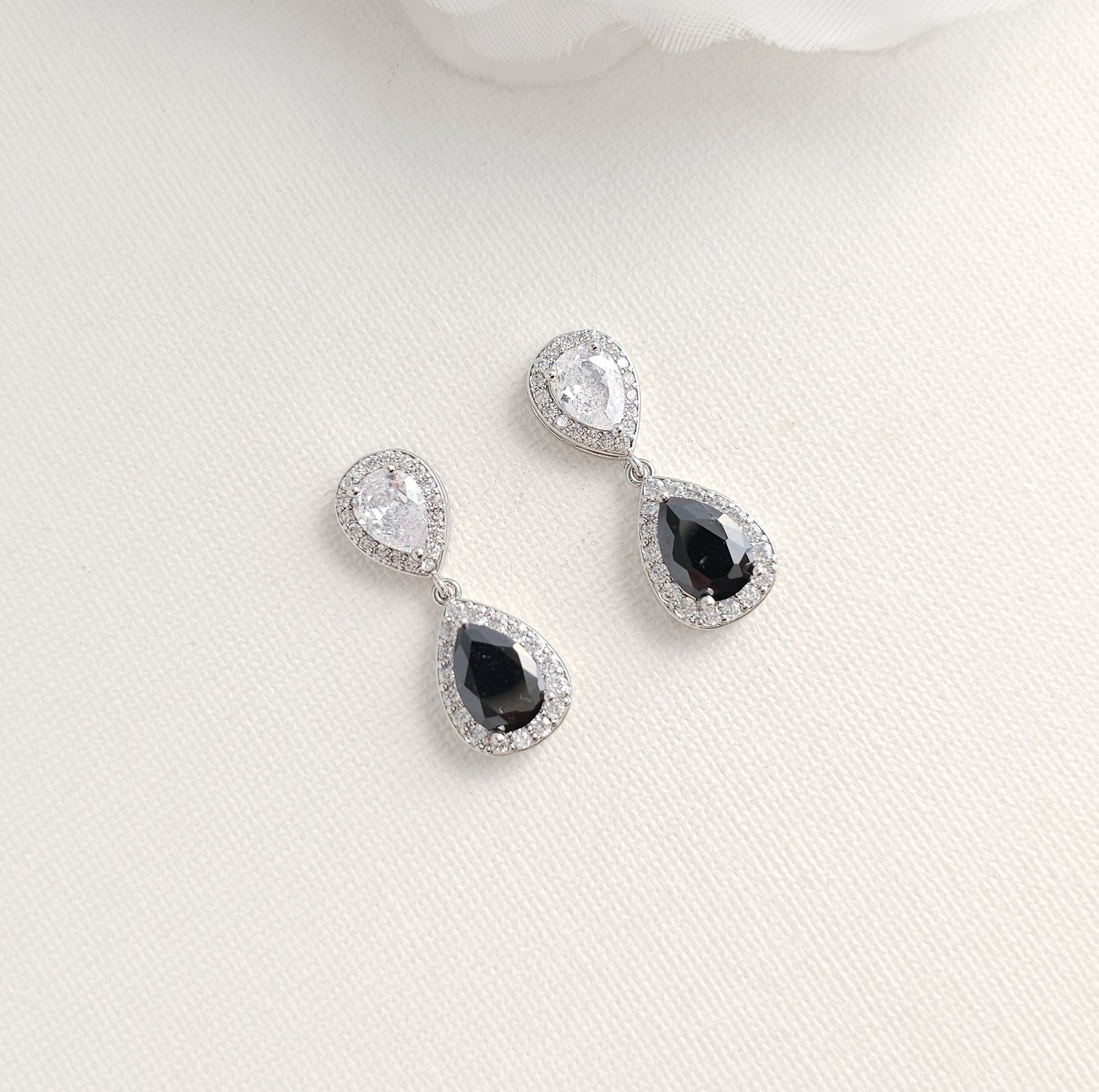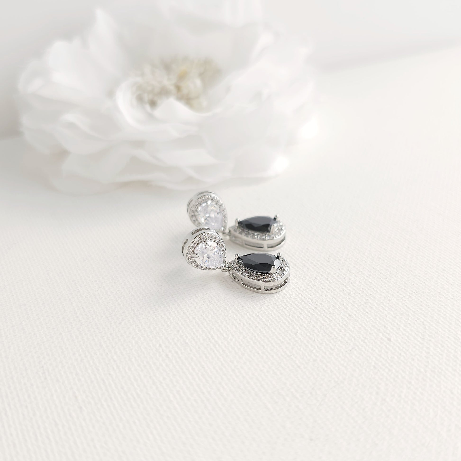 Black CZ & Silver Clip On Drop Earrings for Women: The Formal & Wedding Elegance-Zoe