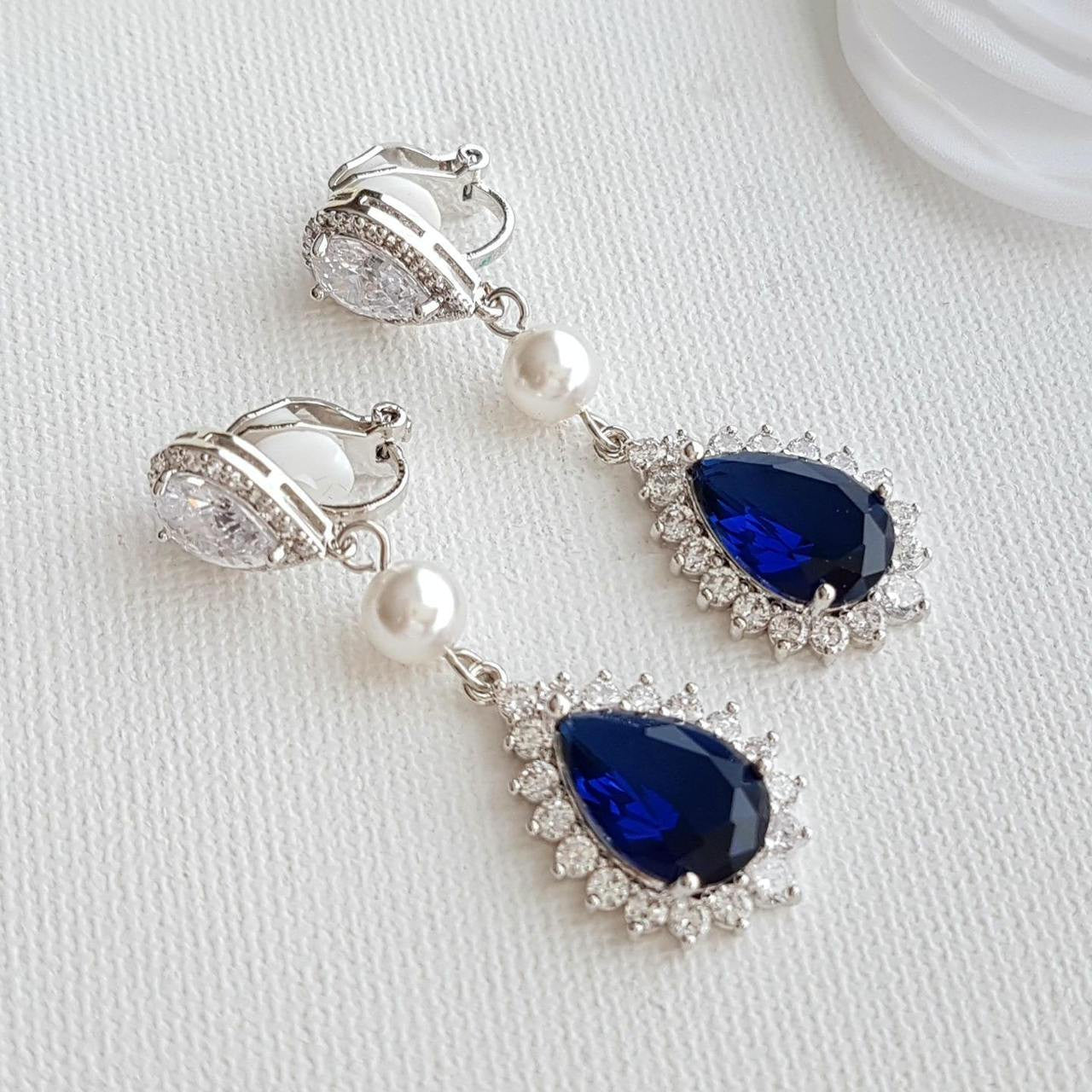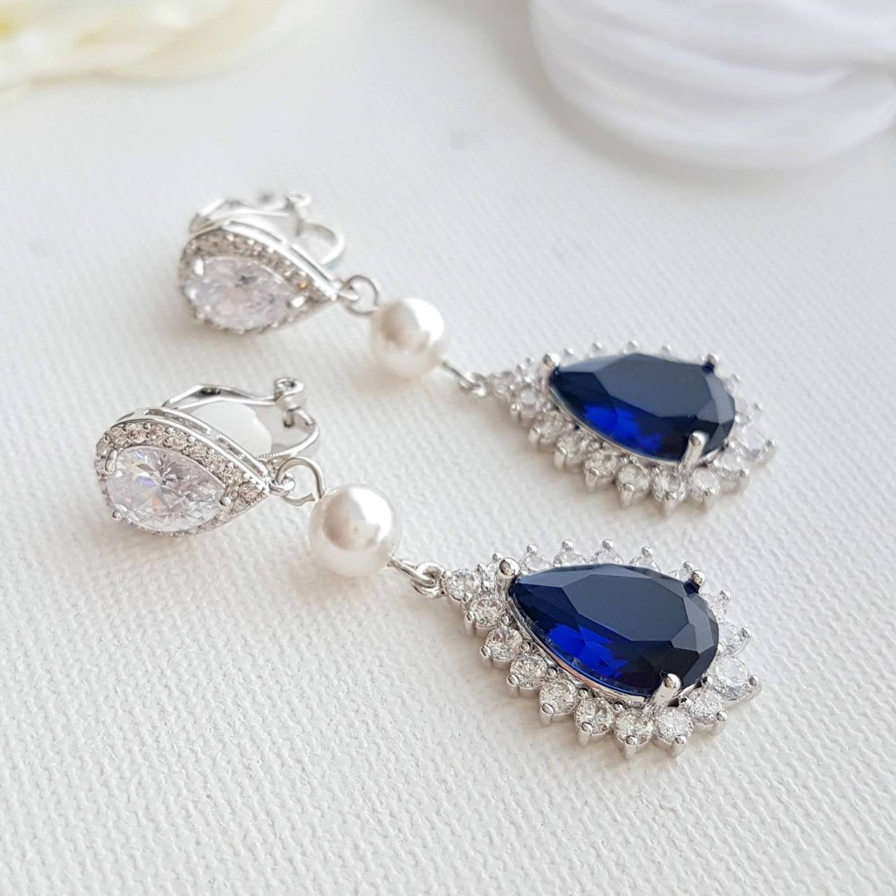 Gorgeous Sapphire Blue Clip On Earrings for Weddings