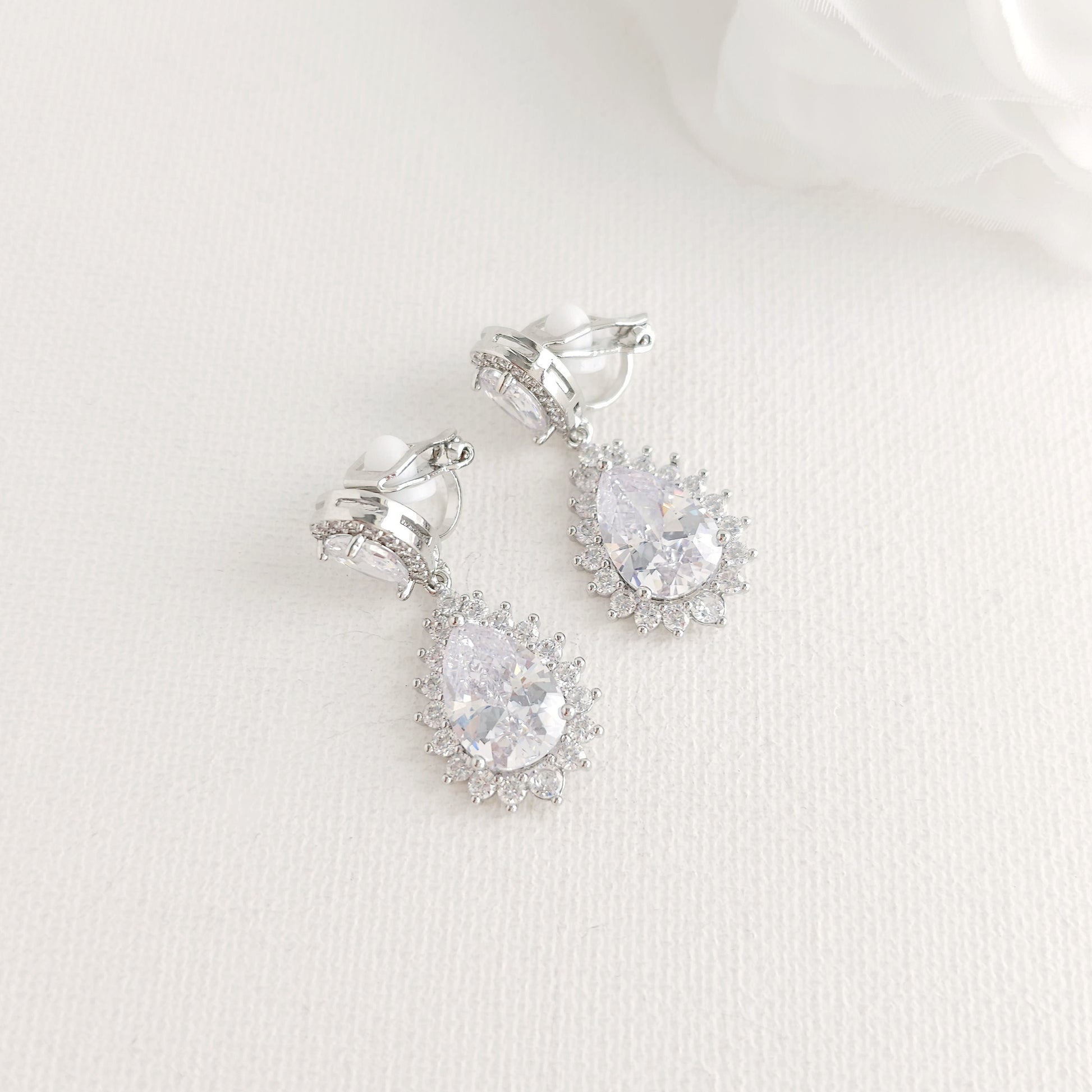 - Clip-On Earrings: The earrings are sparkling and comfortable to wear. The multifaceted, clear CZ crystals in an open setting make them extra sparkly.