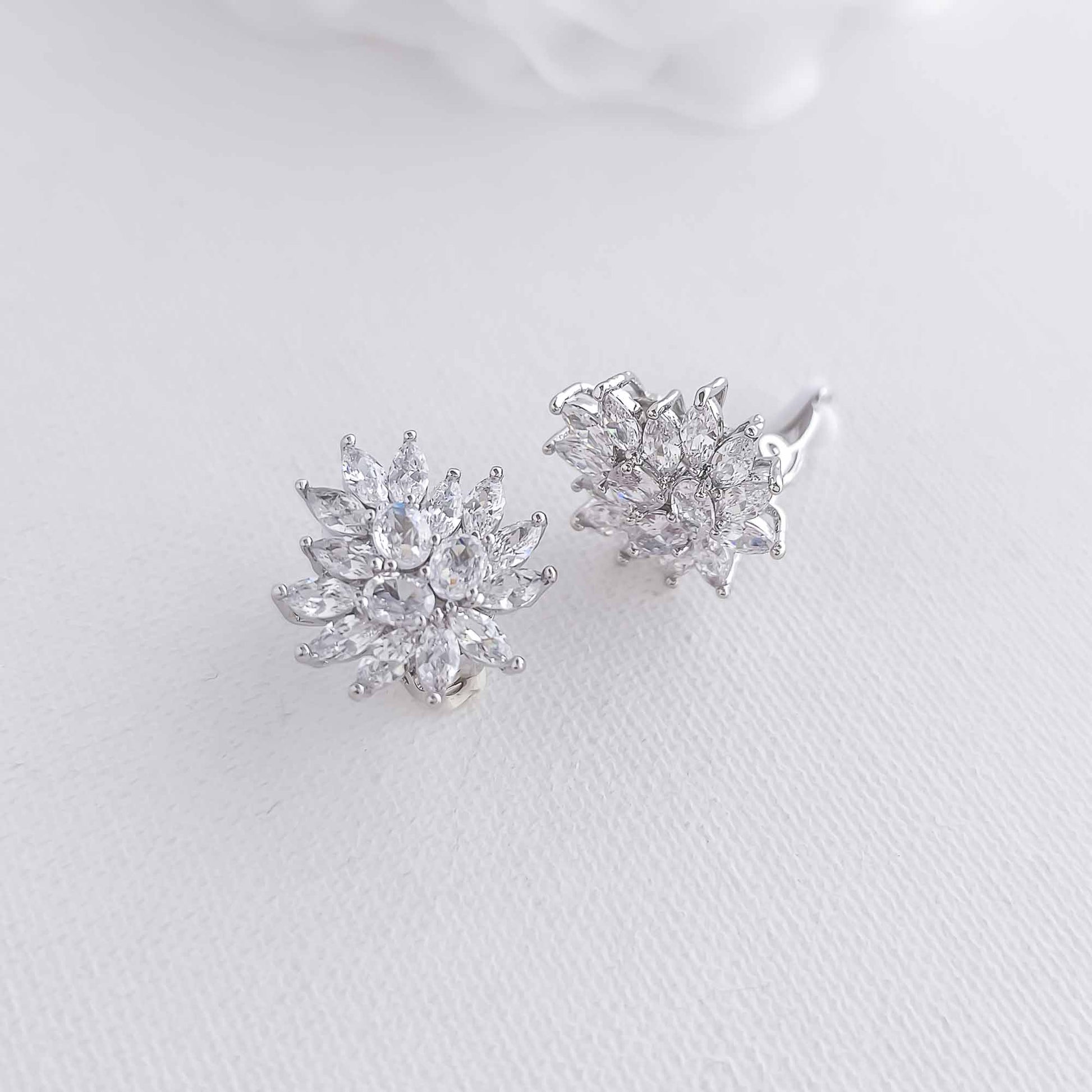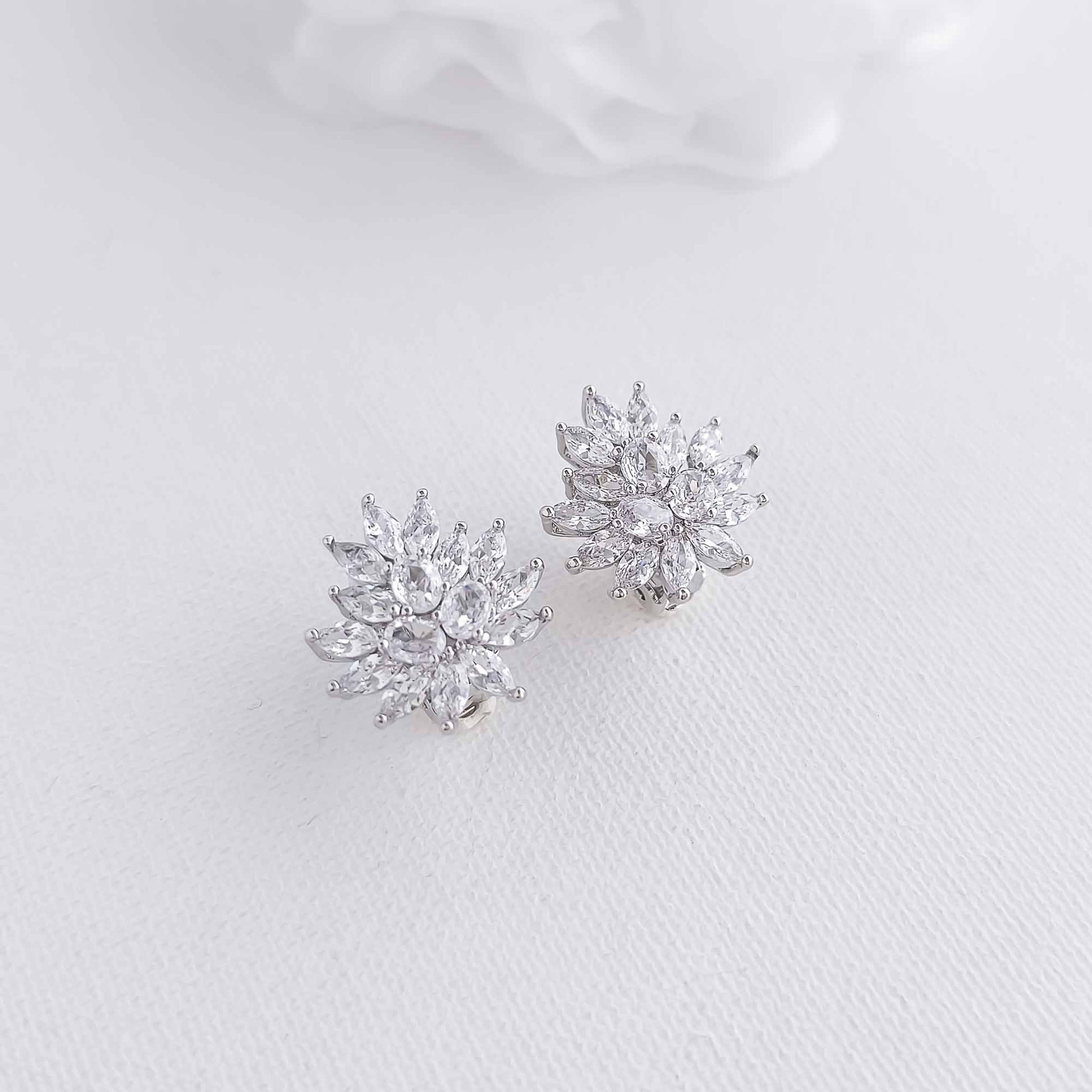 They are small however sparkly and impactful and easily match any outfit, The clip on earrings are made of sparkling marquise-shaped cubic zirconia cluster and come in a silver finish that is rhodium-plated.