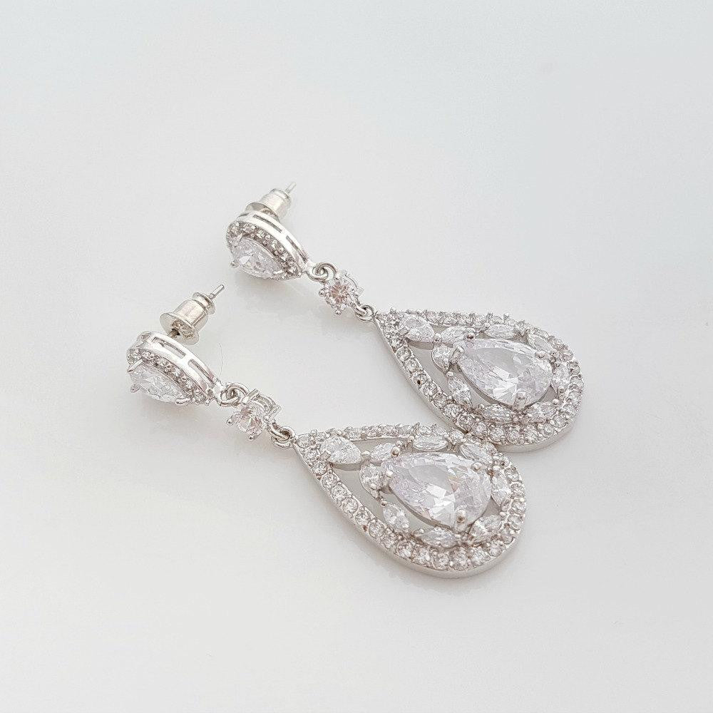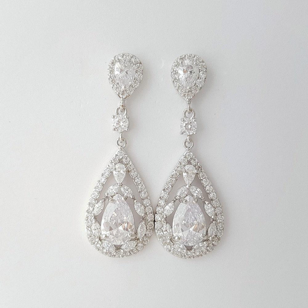 Beautiful CZ Crystal Drop Earrings Made of Weddings