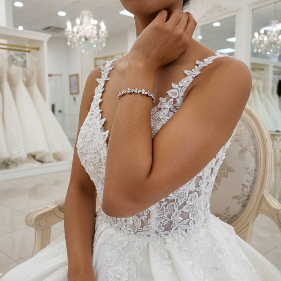 Sparkly Tennis Bracelet for Brides & Weddings Made of Leaf Shaped CZ Crystals