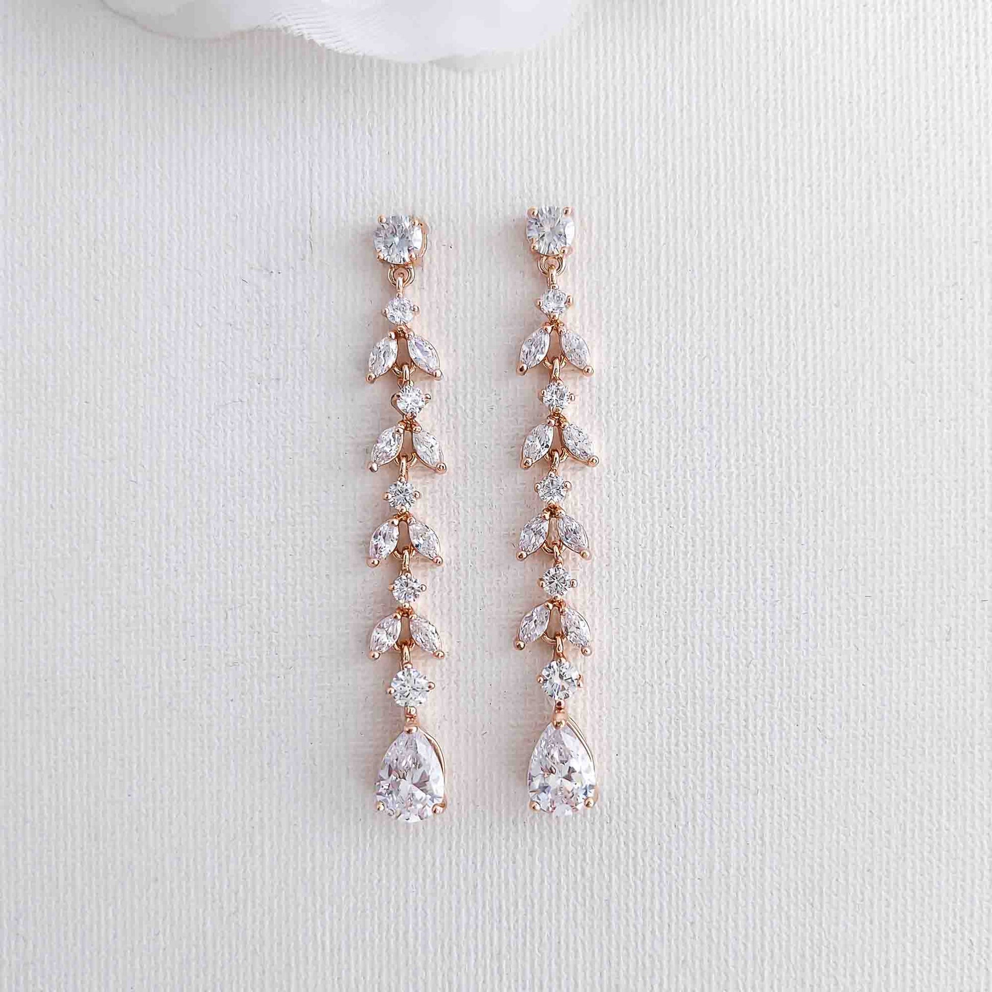Dangling Leaf Bridal Earrings in Rose Gold-Miranda