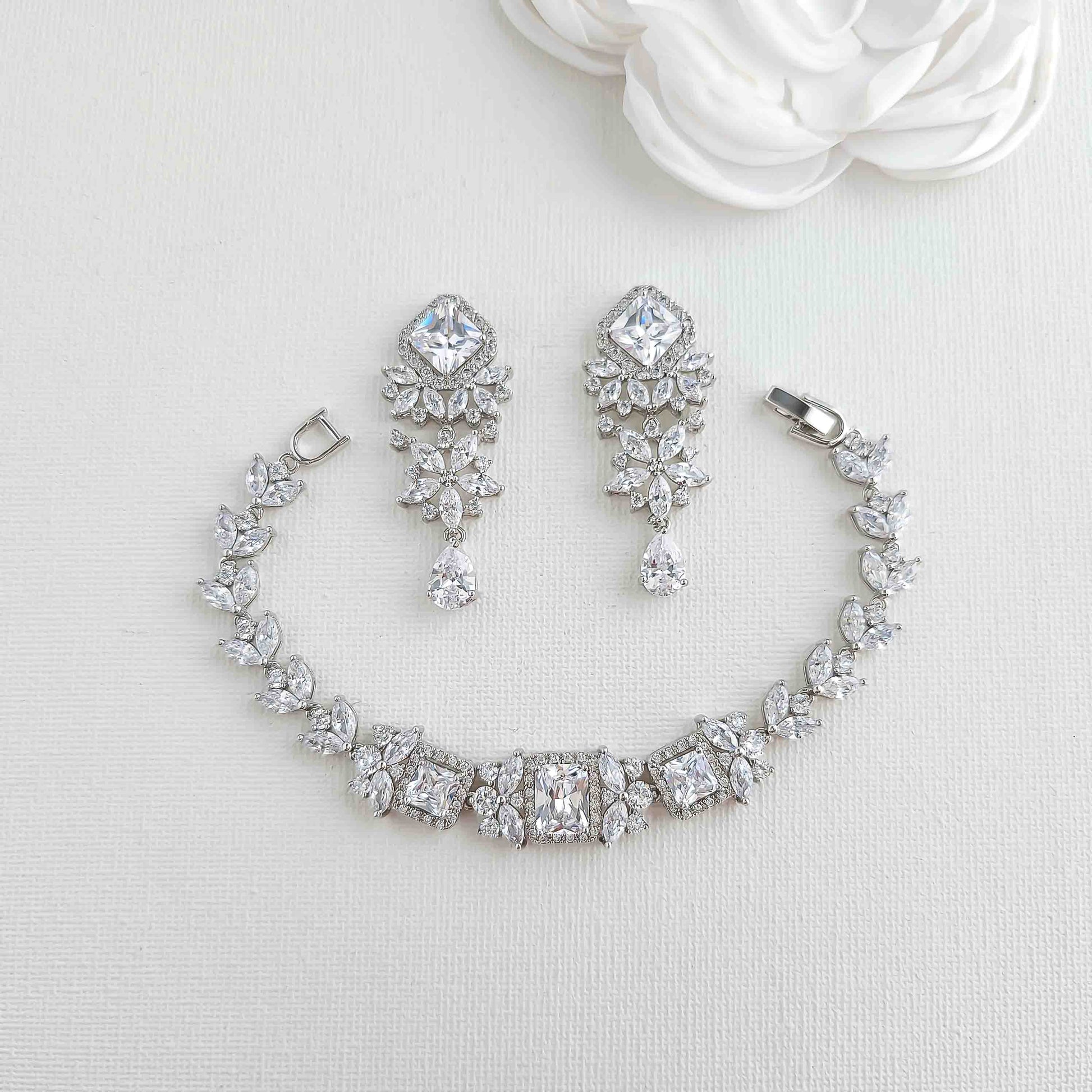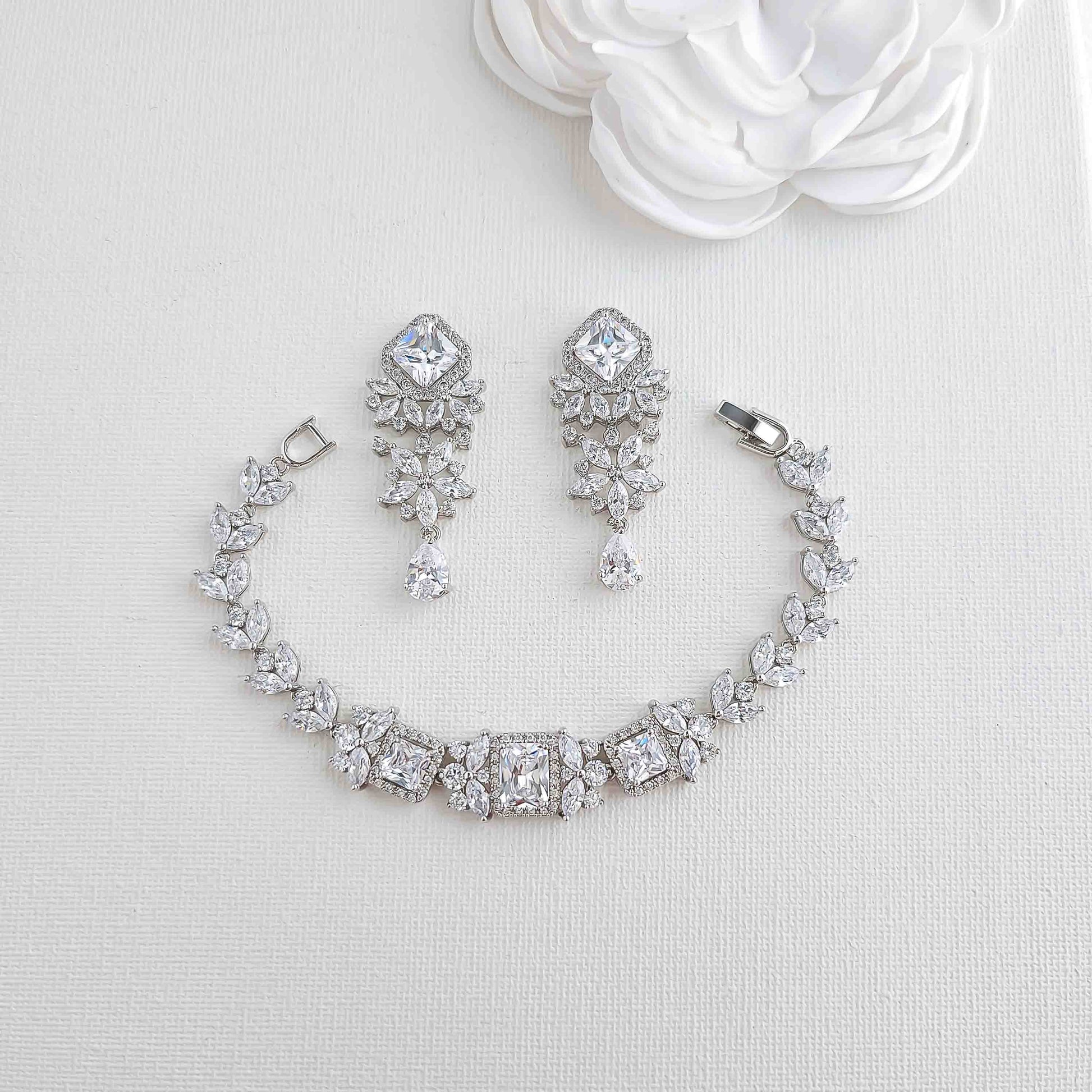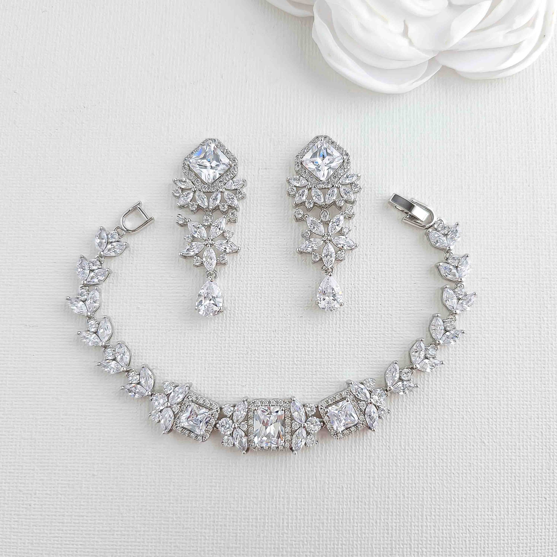 Drop Earrings and Bracelet Set for Wedding-Lacie