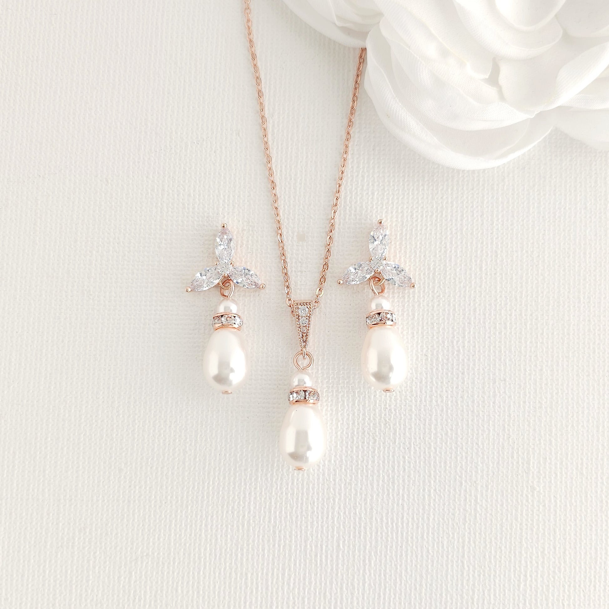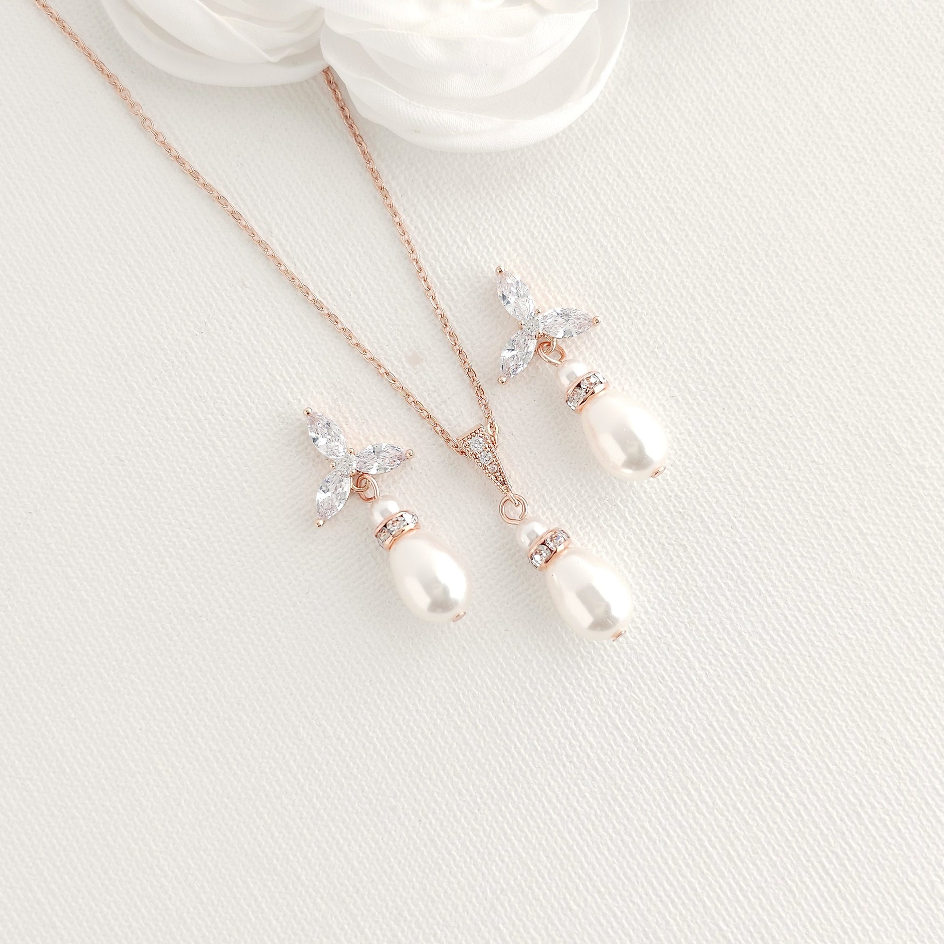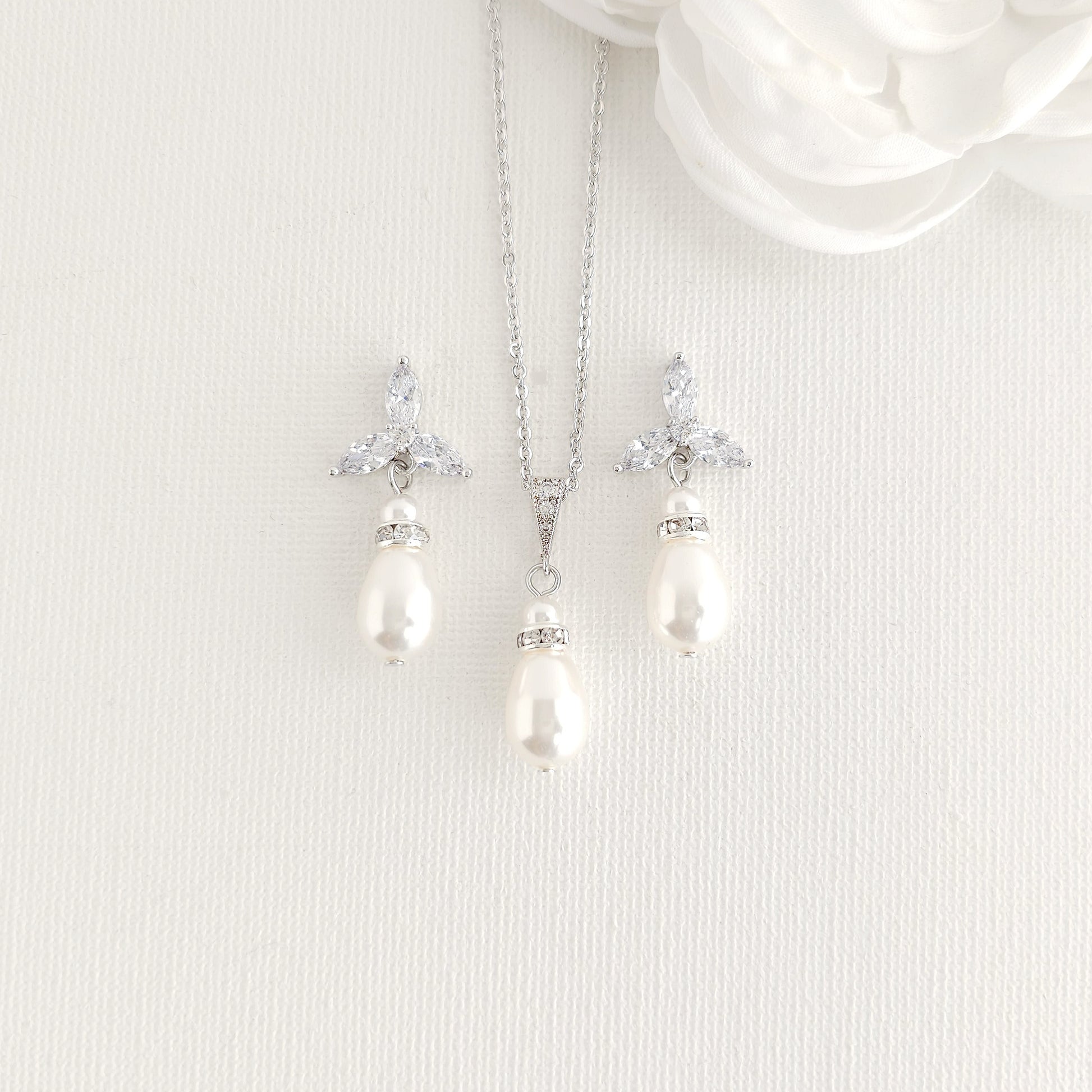 Floral Pearl Jewellery Set: Elegant Teardrop Necklace and Earrings for Weddings & Occasions- Flora
