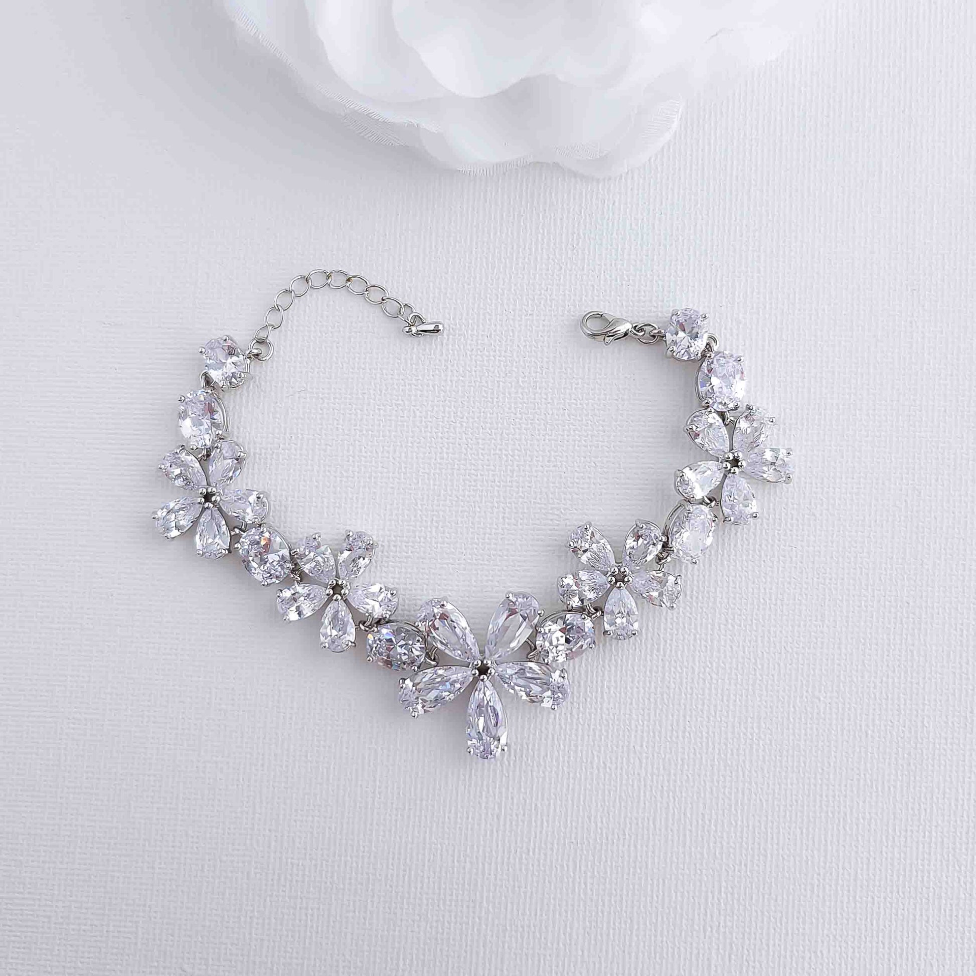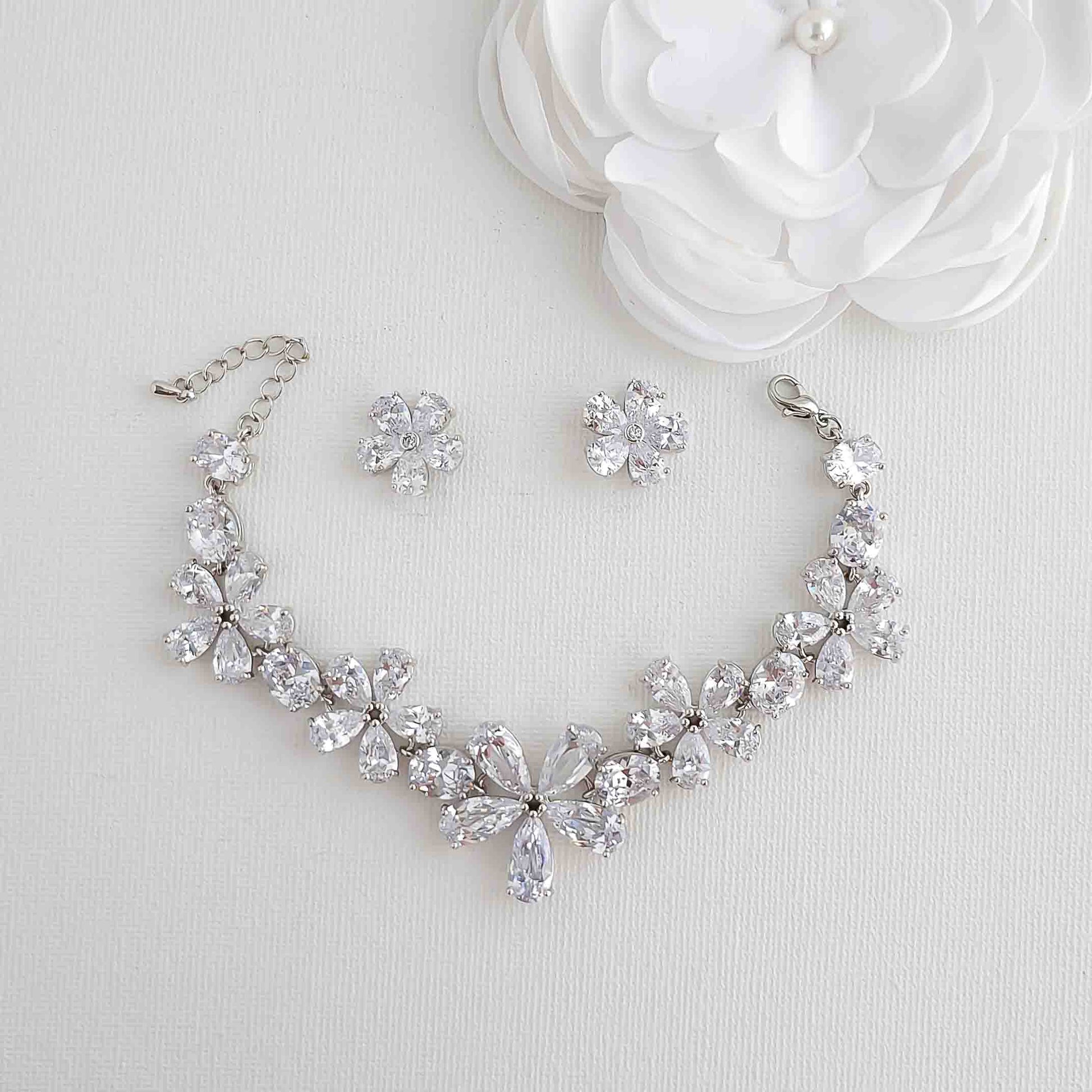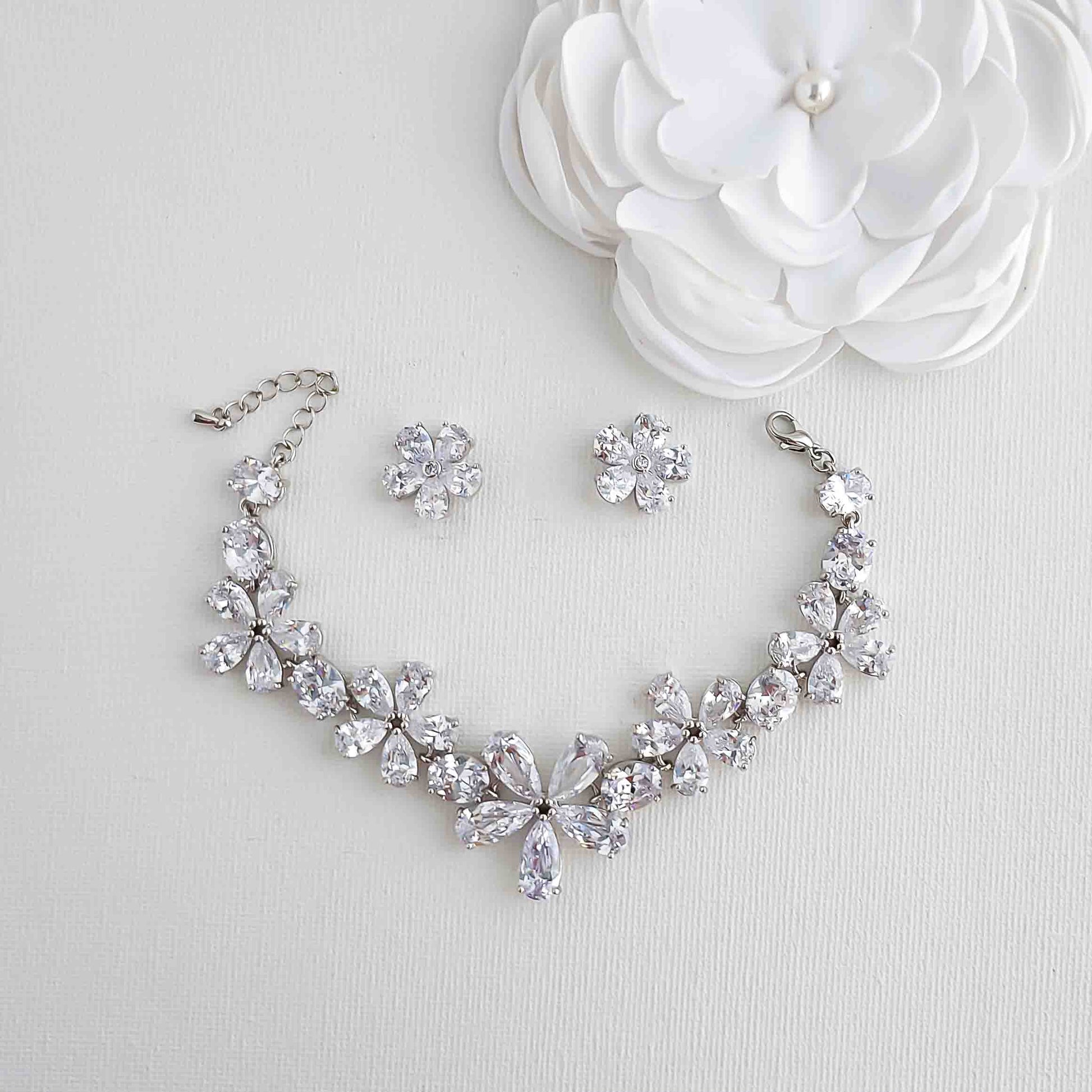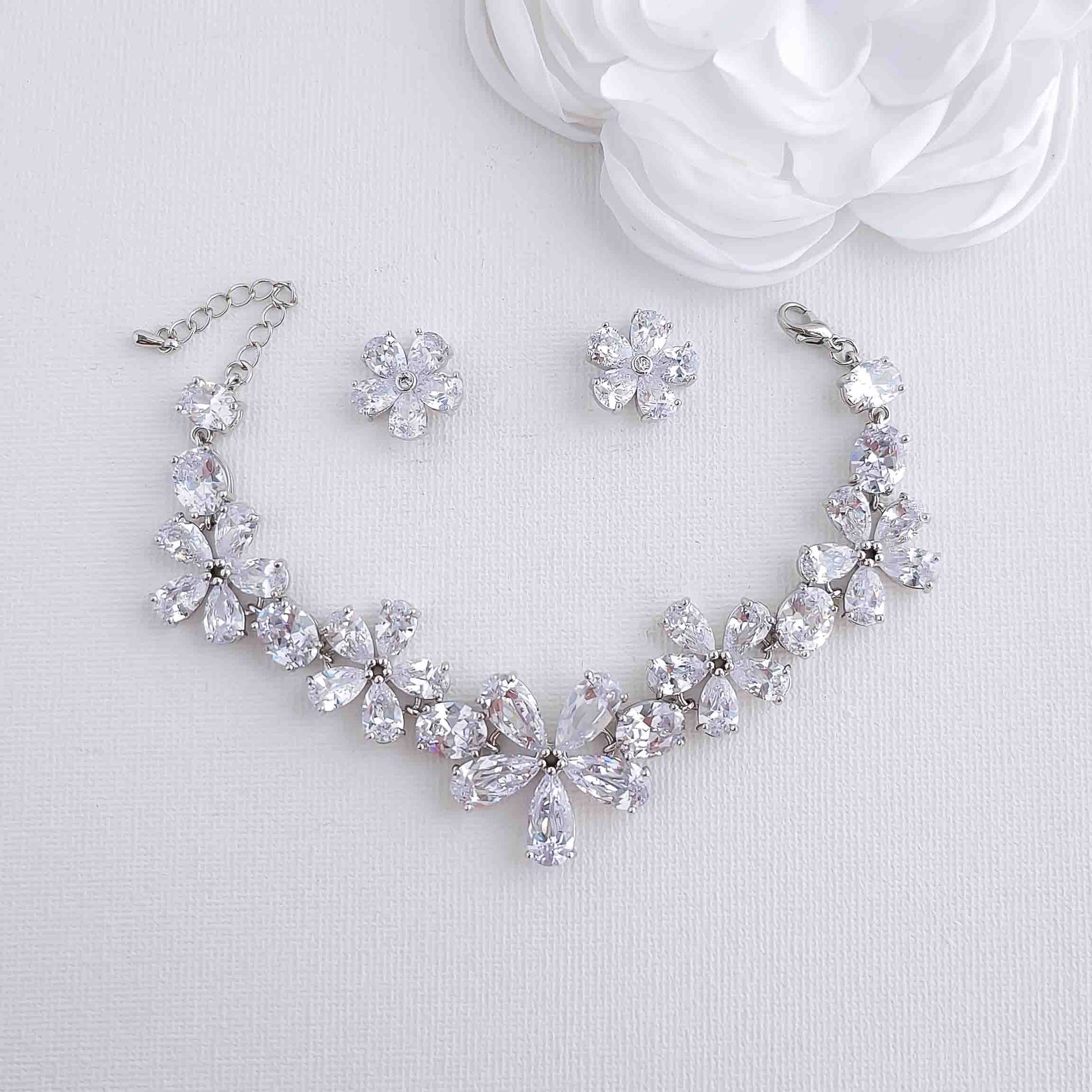 If you want to keep your bridal jewellery simple and pretty, this flower-themed floral stud earrings and bracelet set is the perfect choice. Inspired by daisies, this cubic zirconia jewellery set is super sparkly and can be worn on your wedding day or for special occasions with formal and everyday outfits.
