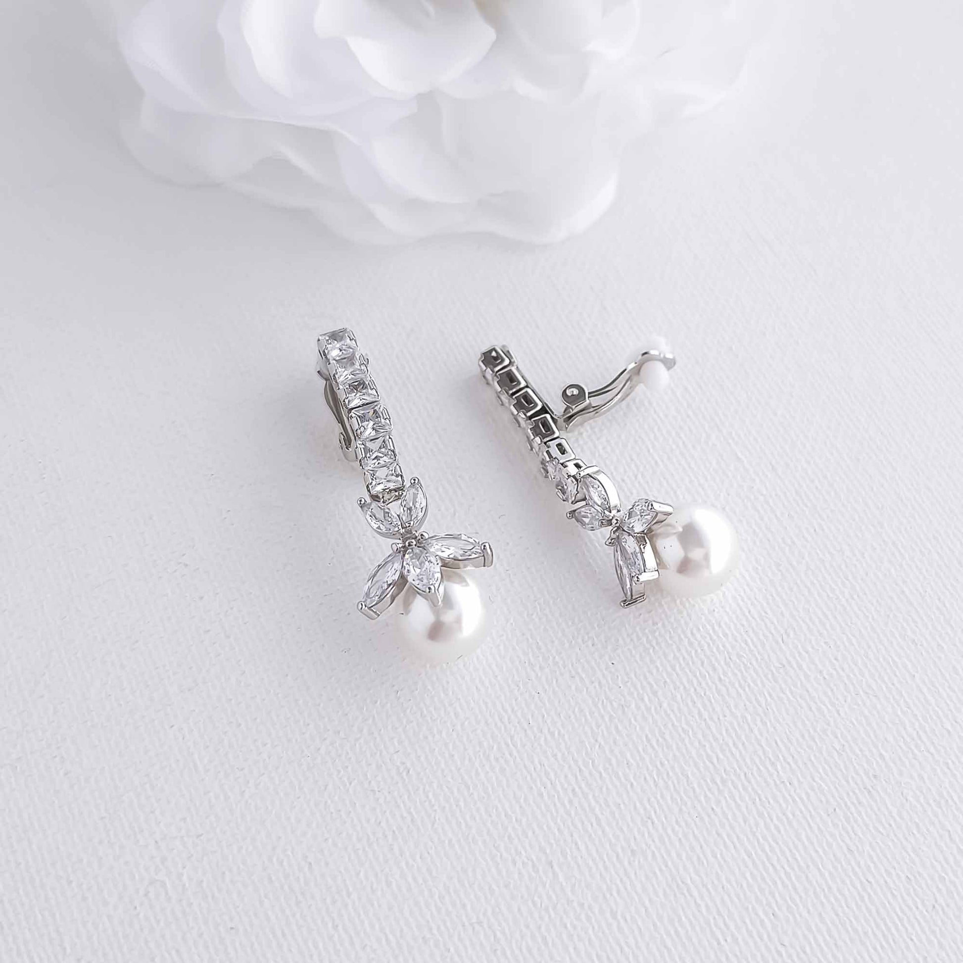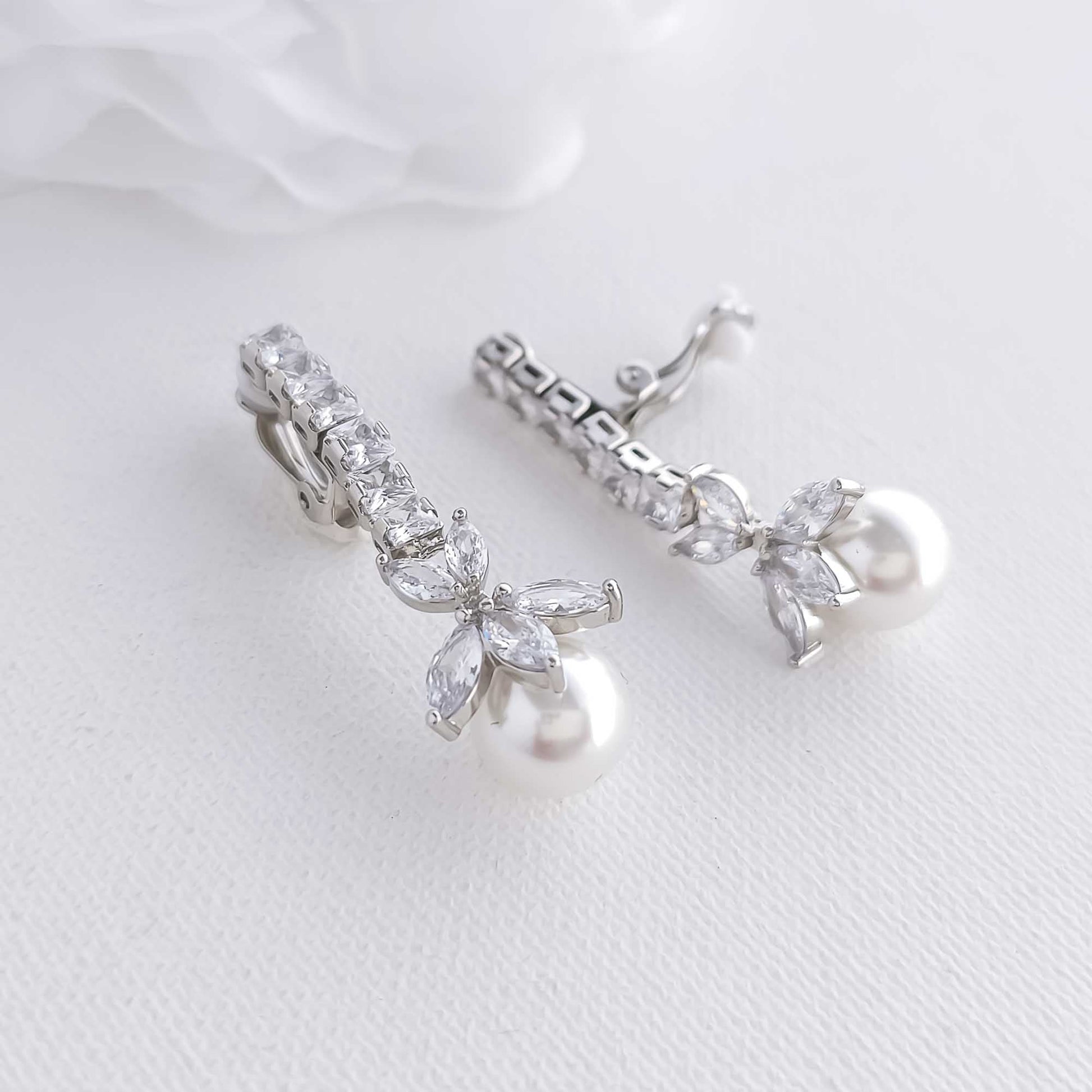Elegant Cubic Zirconia and Pearl Clip-On Earrings for Brides