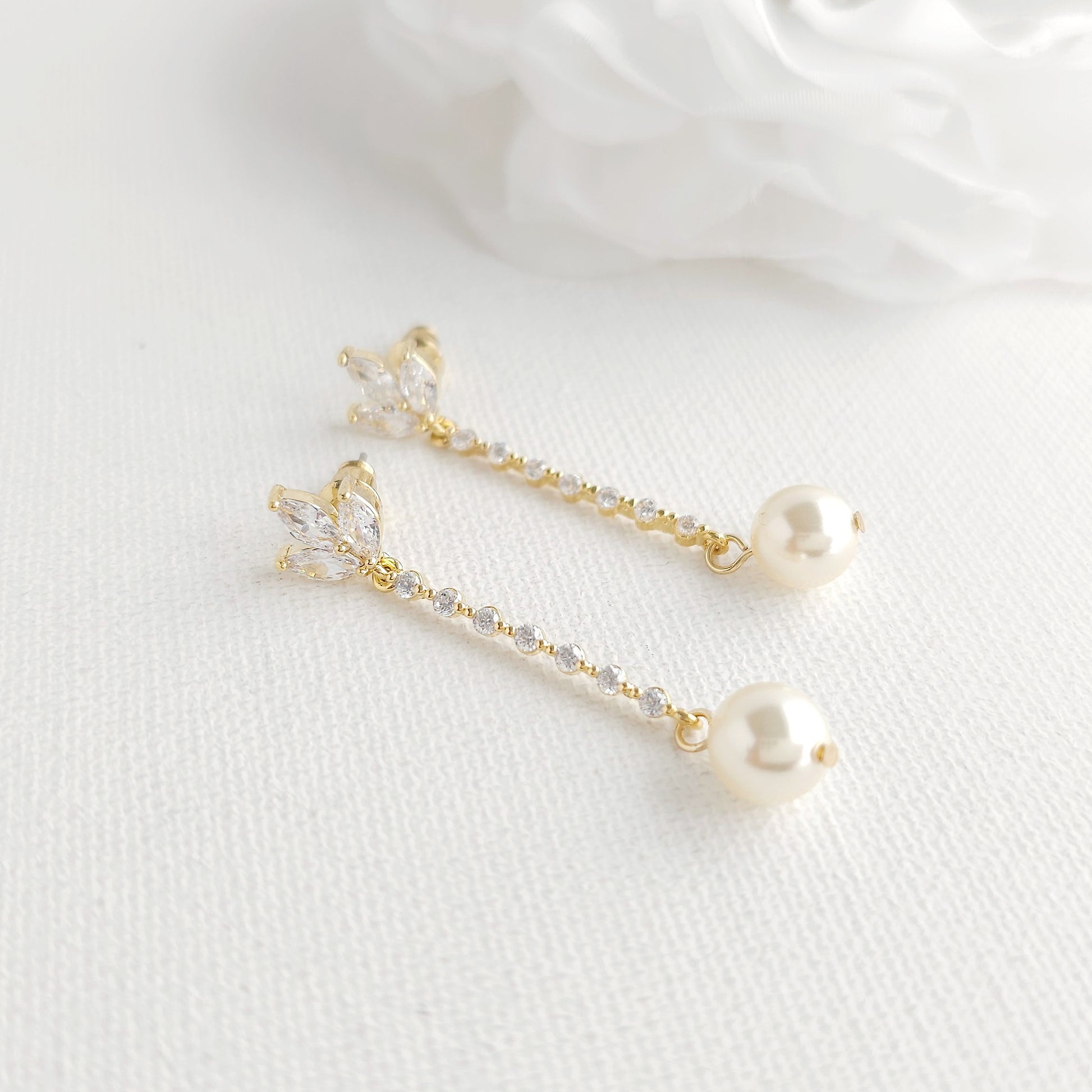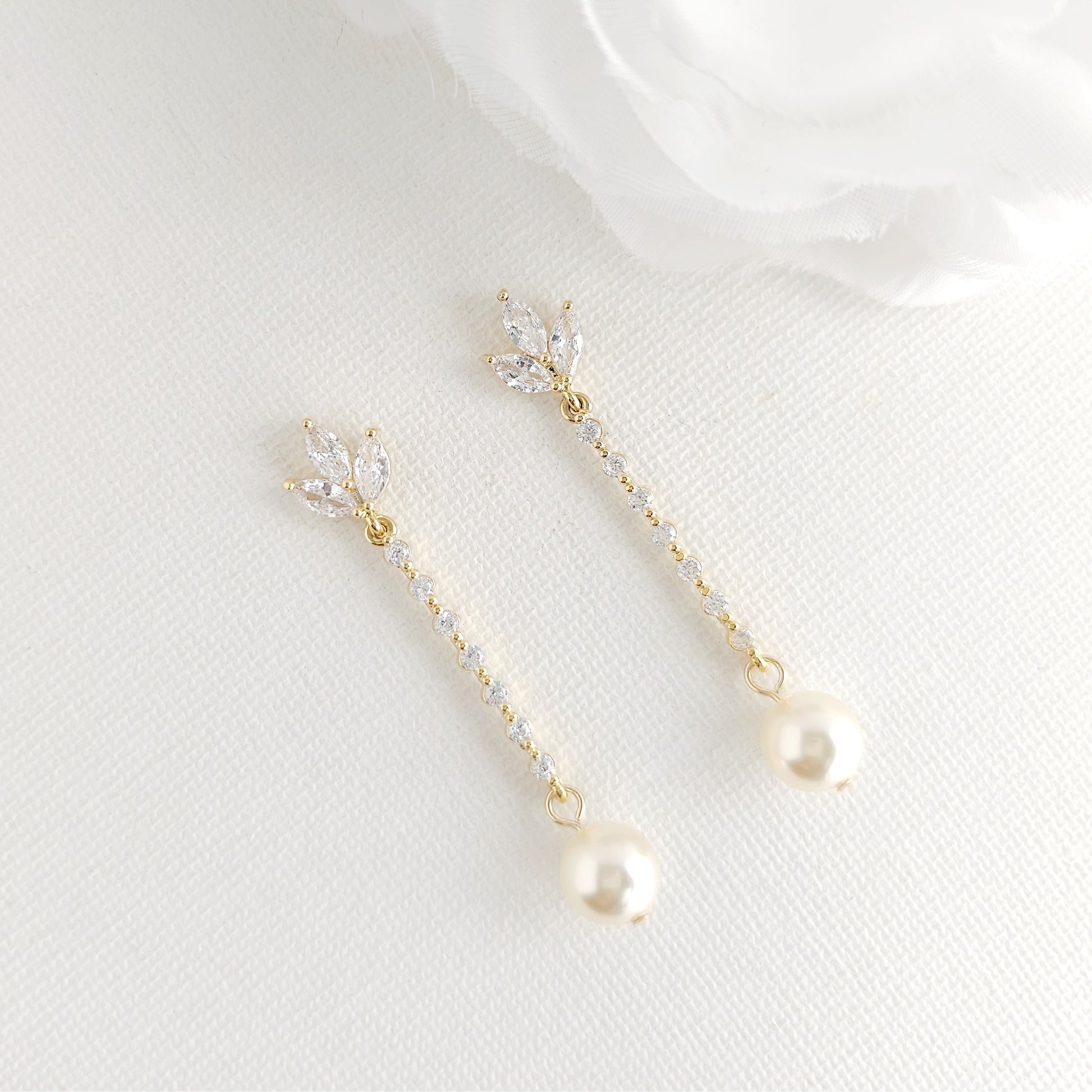 Sleek Pearl Drop Gold Earrings for Brides & Bridesmaids