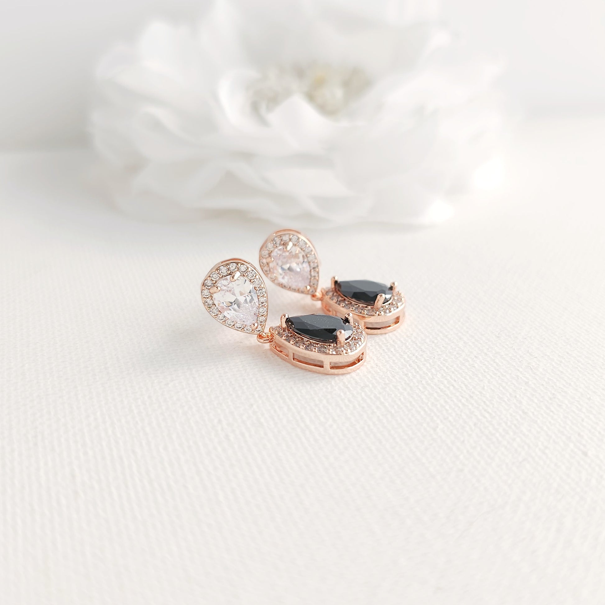 Rose Gold Black Cubic Zirconia Drop Earrings: Contrast or Matching Impact-Zoe