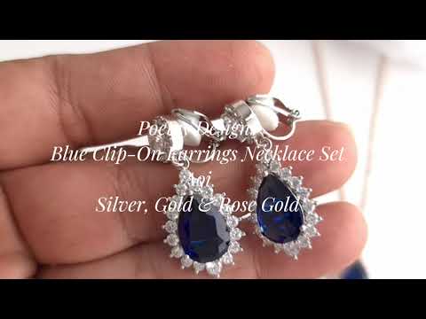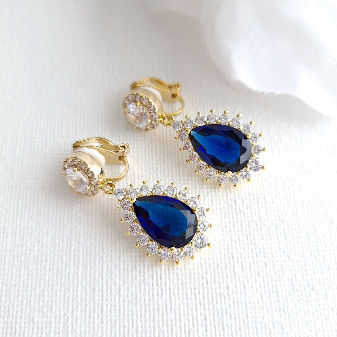The clip earrings are comfortable, with a sapphire blue teardrop and round ear top. The earrings are made of high-quality cubic zirconia, making them super sparkly and highly reflective.