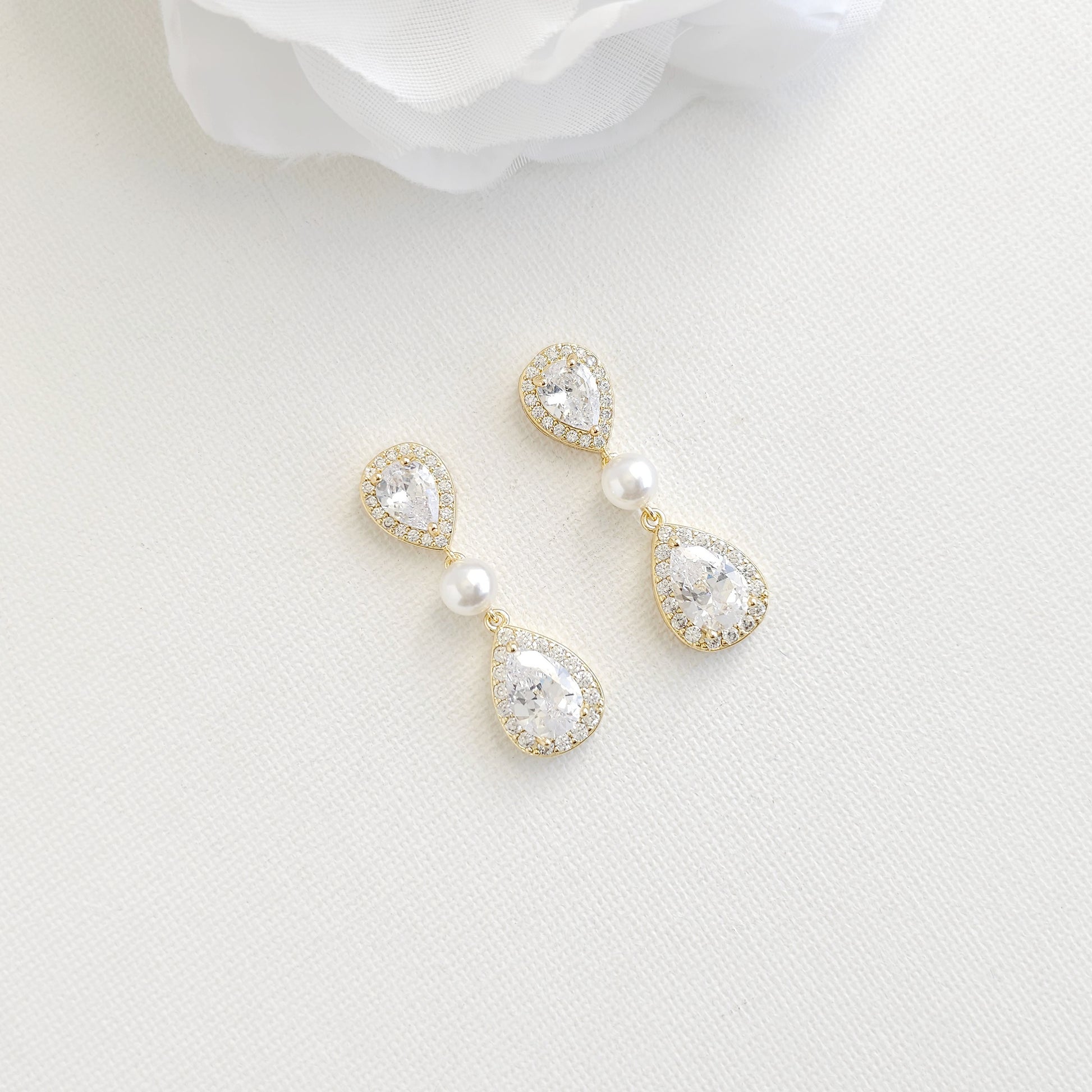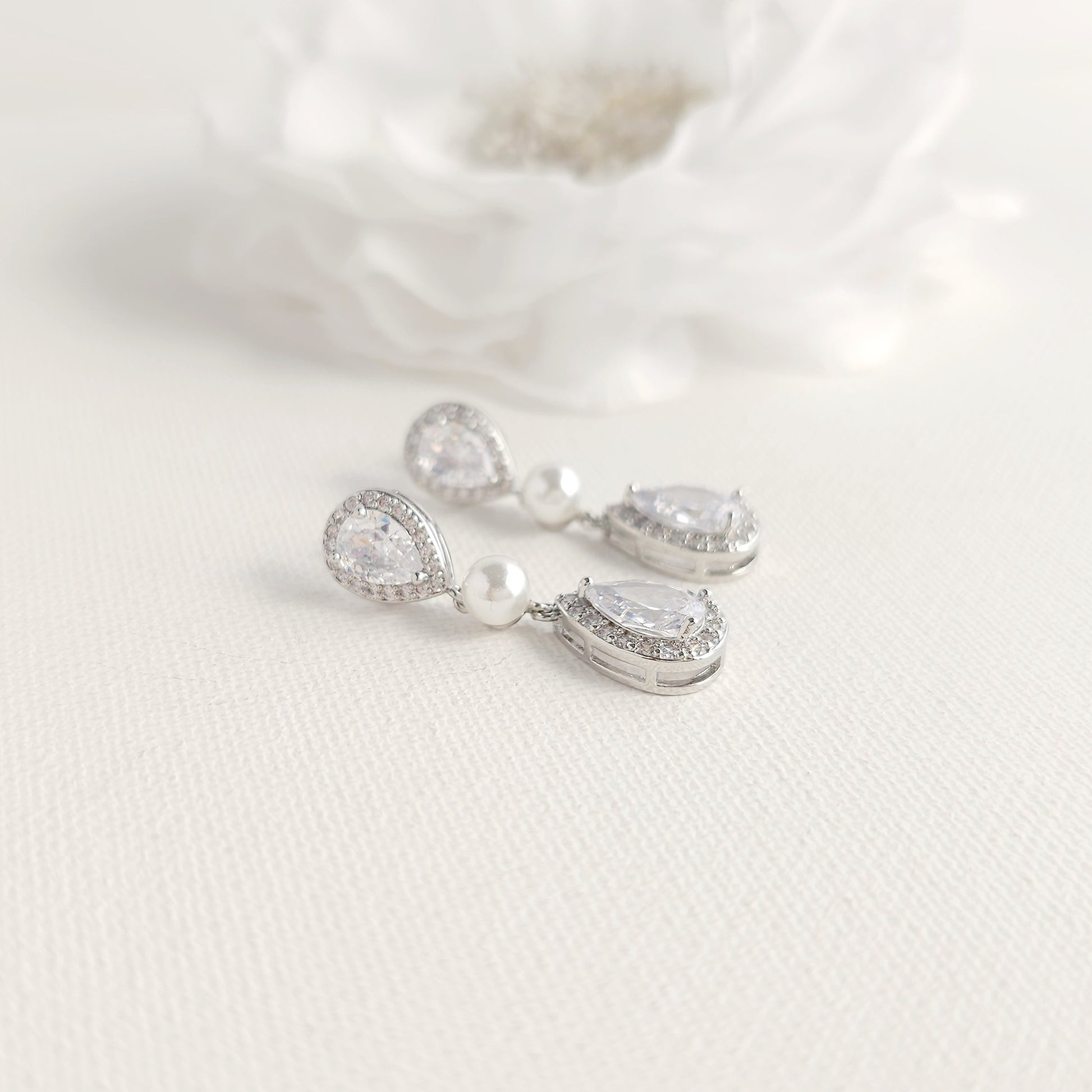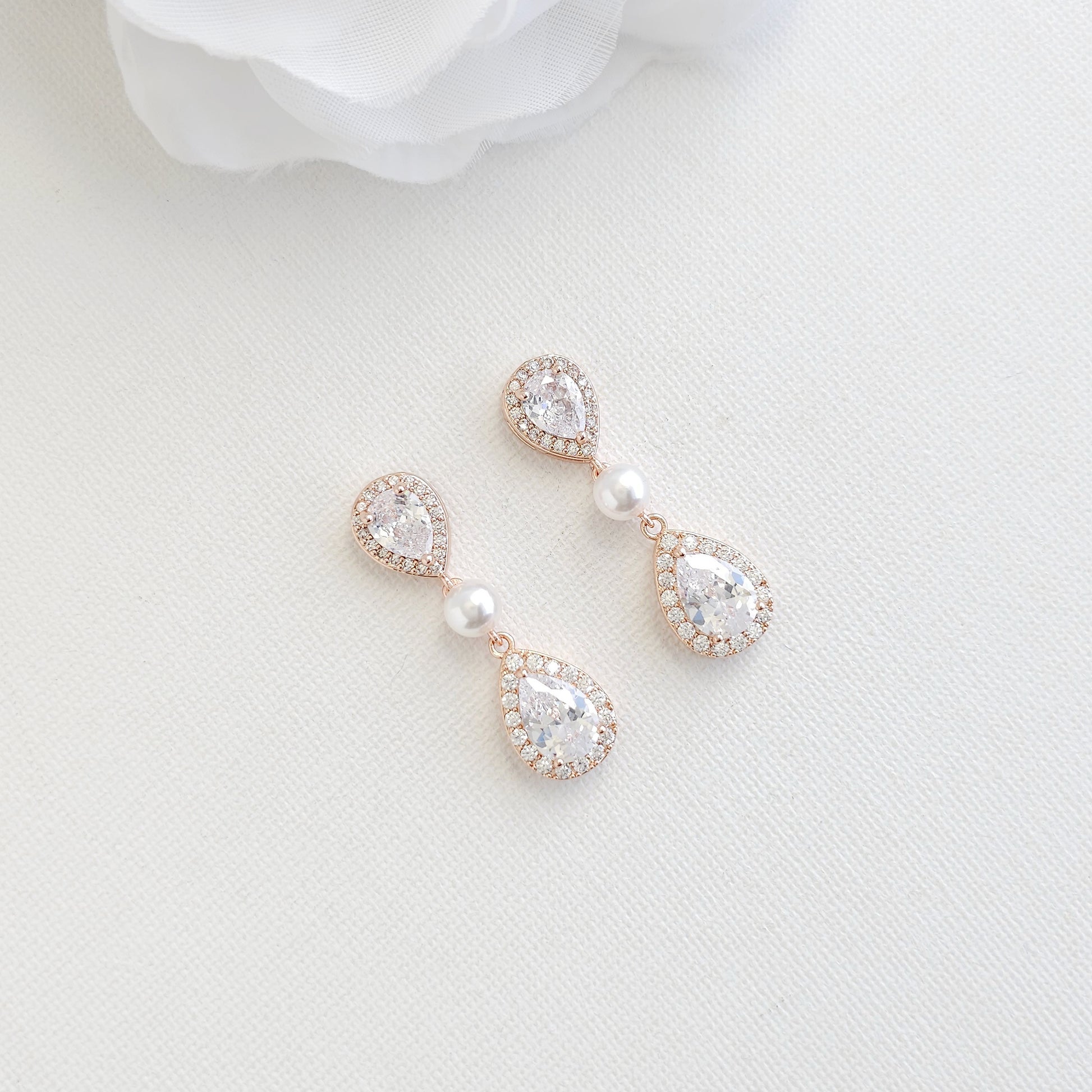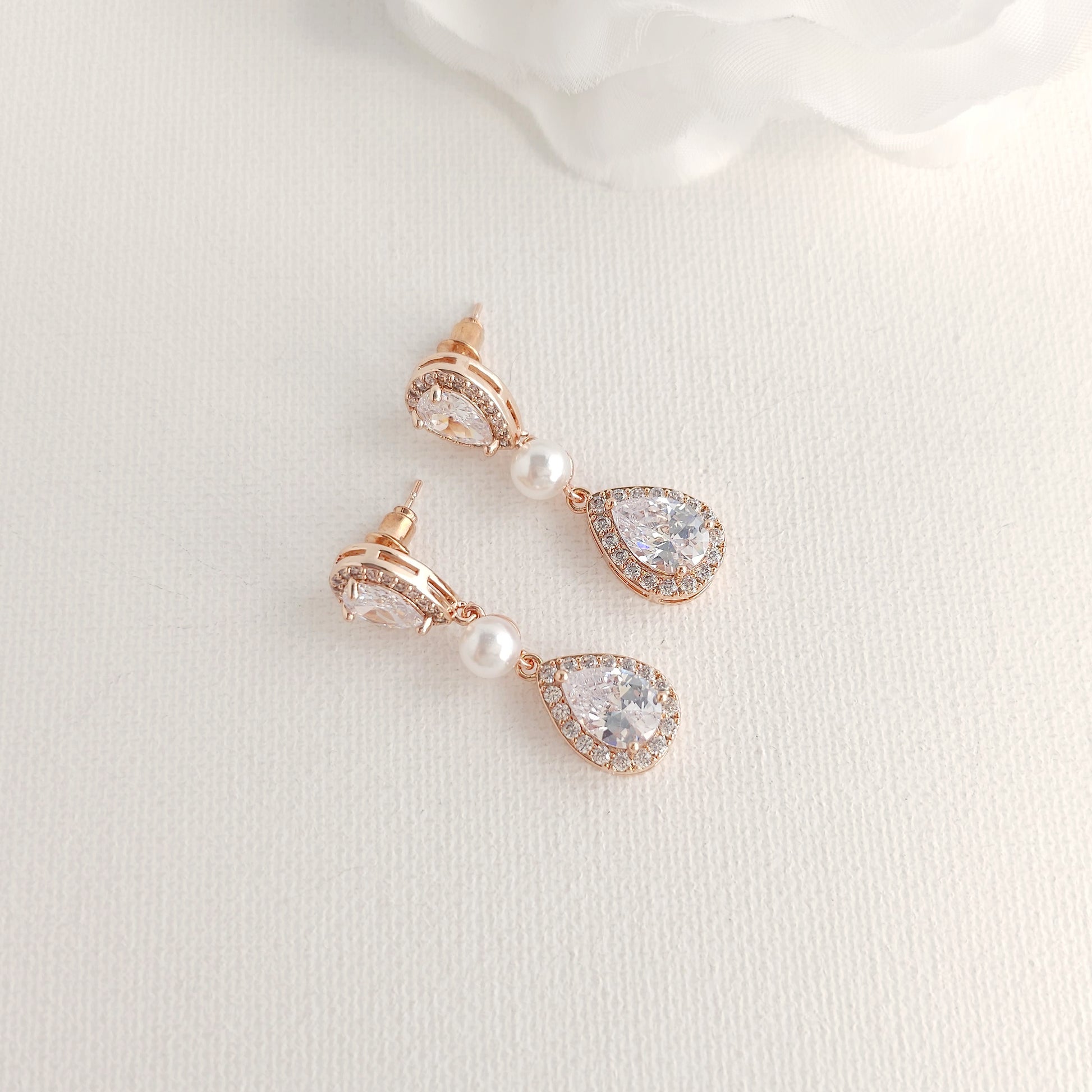 Rose Gold Bridal Teardrop Earrings with Pearl & Cubic Zirconia - Emma