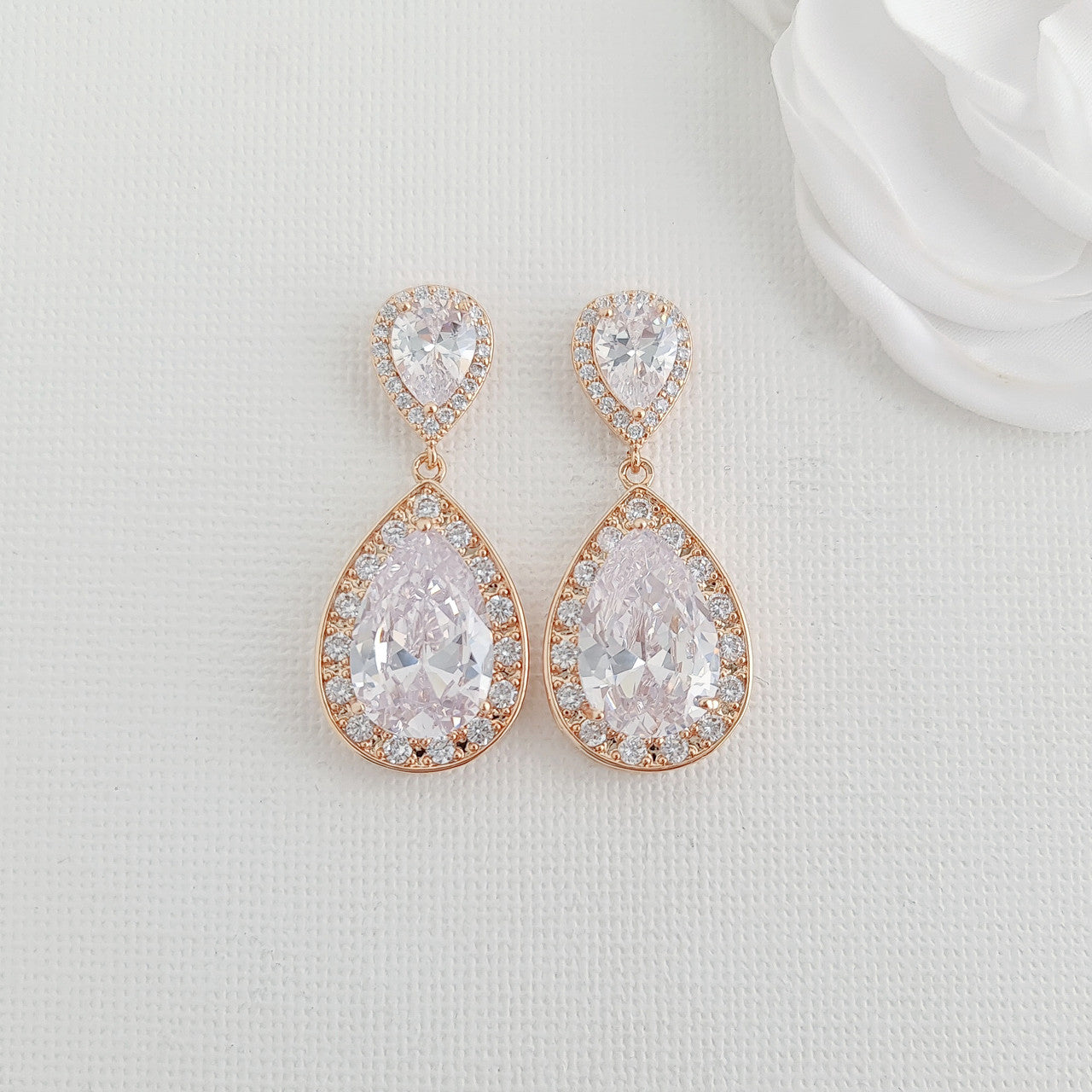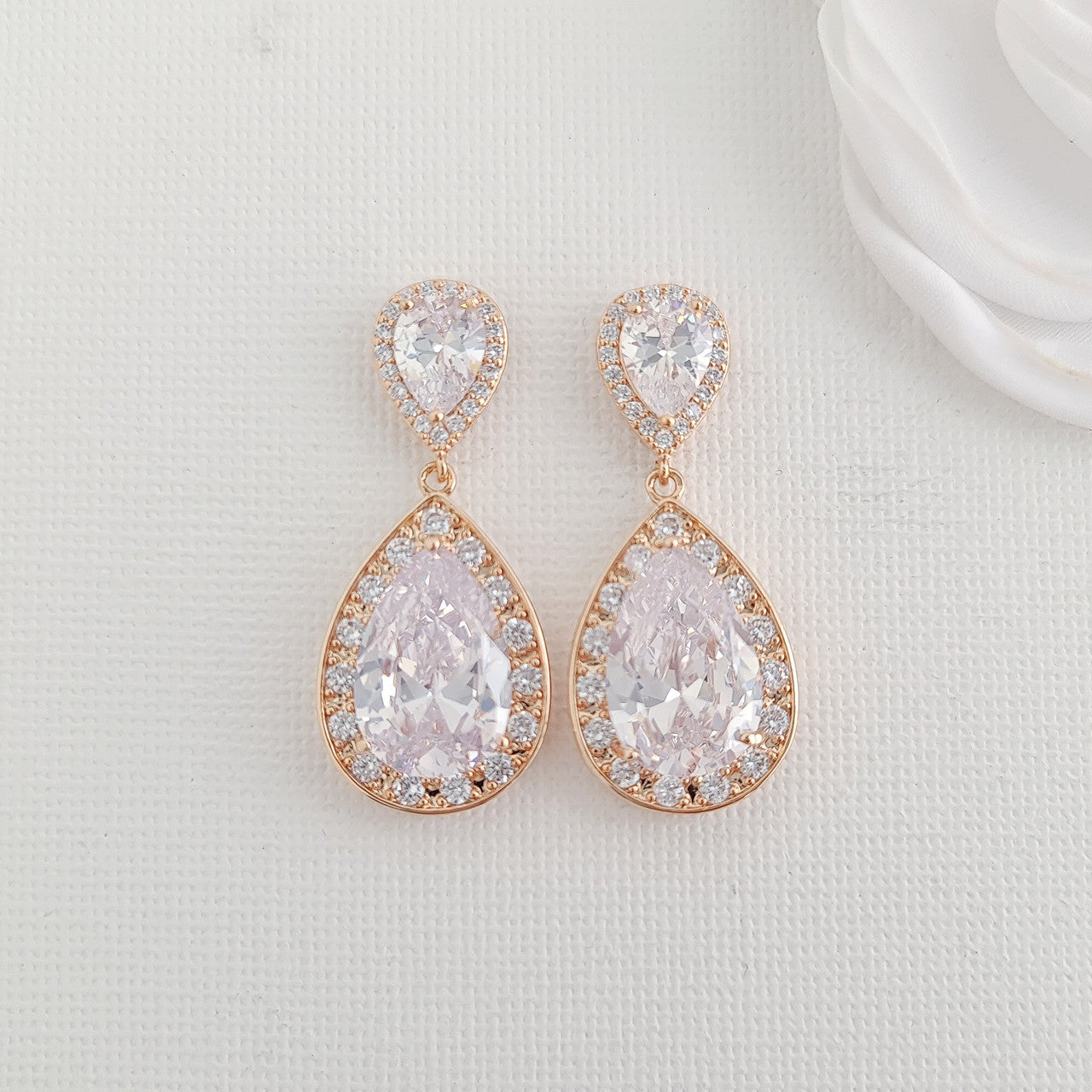 Rose Gold Bridal Earrings for Classic Brides and Bridesmaids Look.