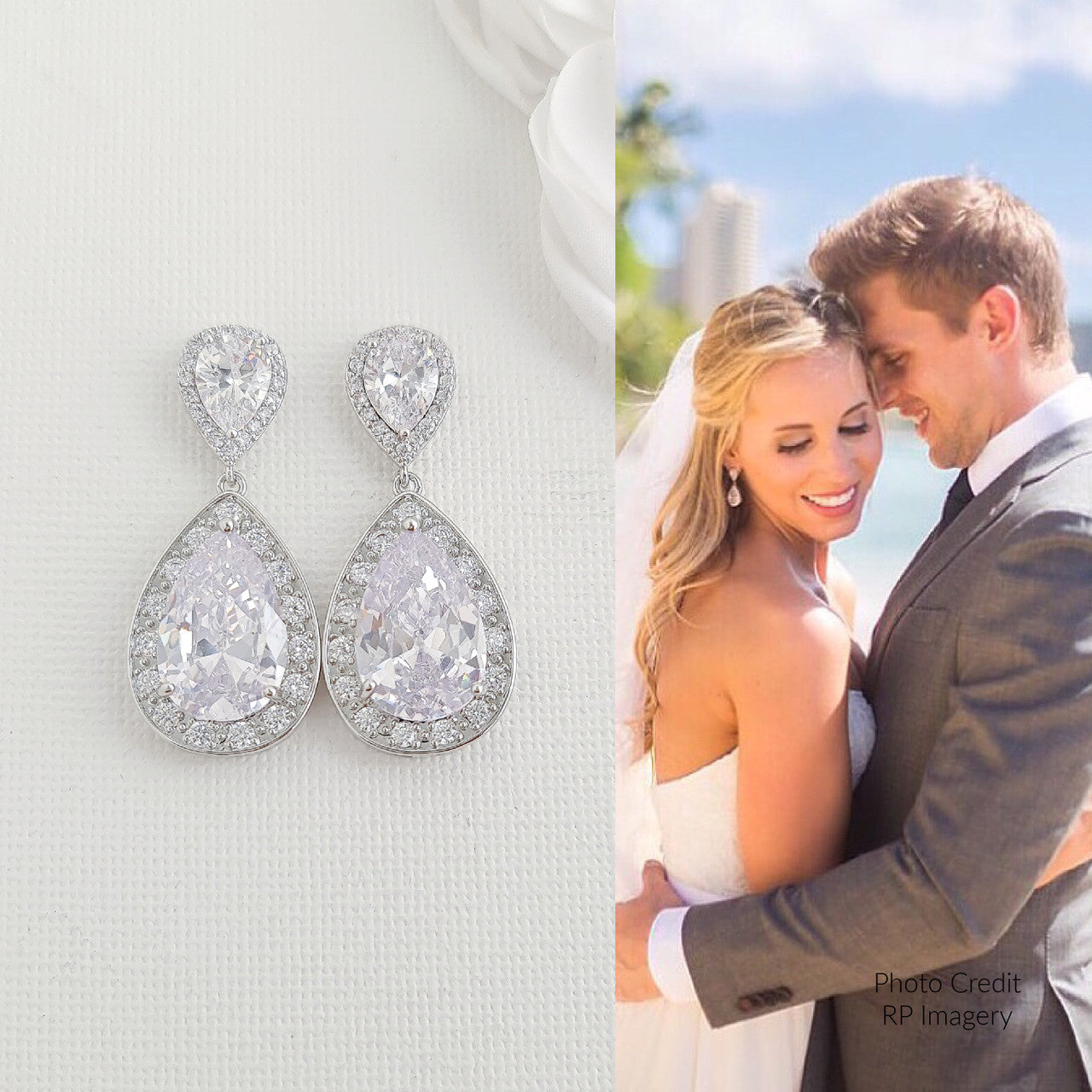 They are mid-sized measuring 1 3/8 inches or 3.5 cms for a perfect length, most importantly earrings are very comfortable to wear on your wedding day.