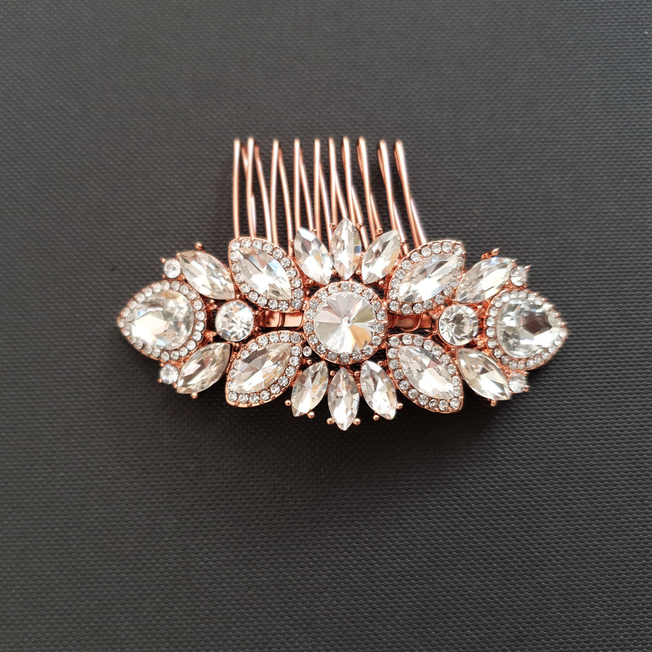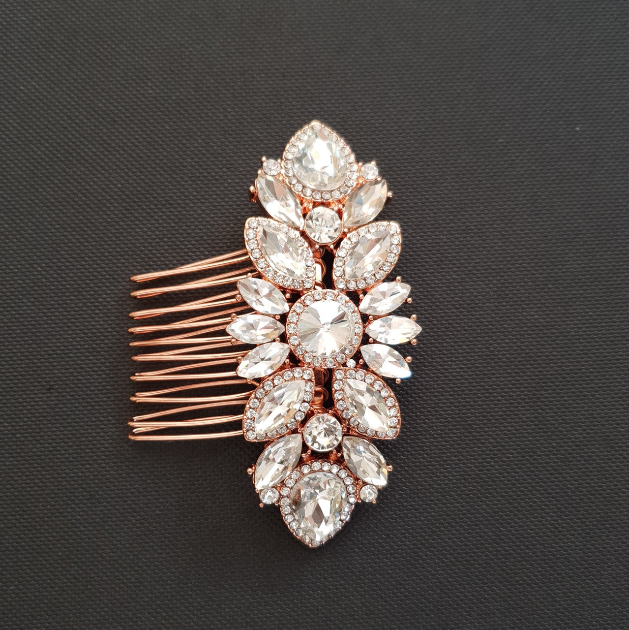 Rose Gold Crystal Hair Comb For Weddings & Brides