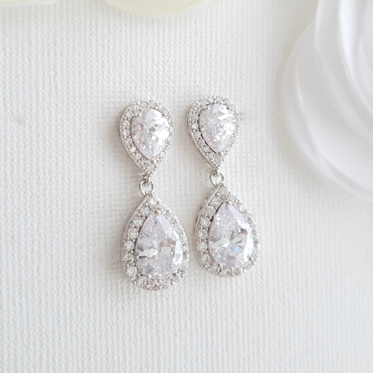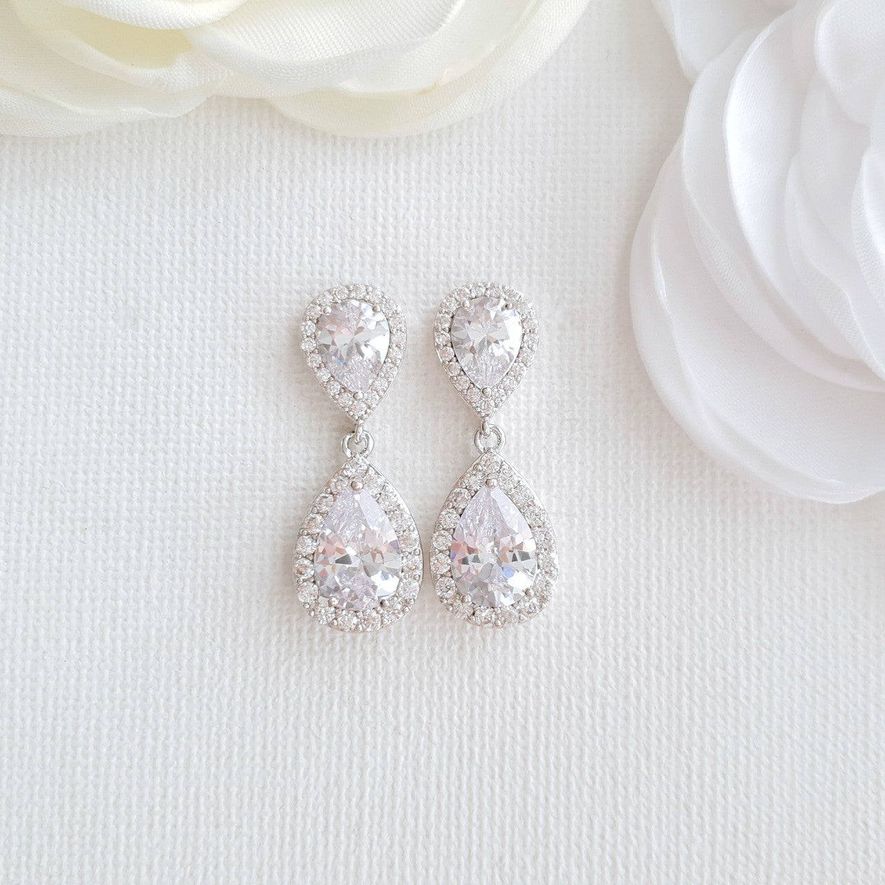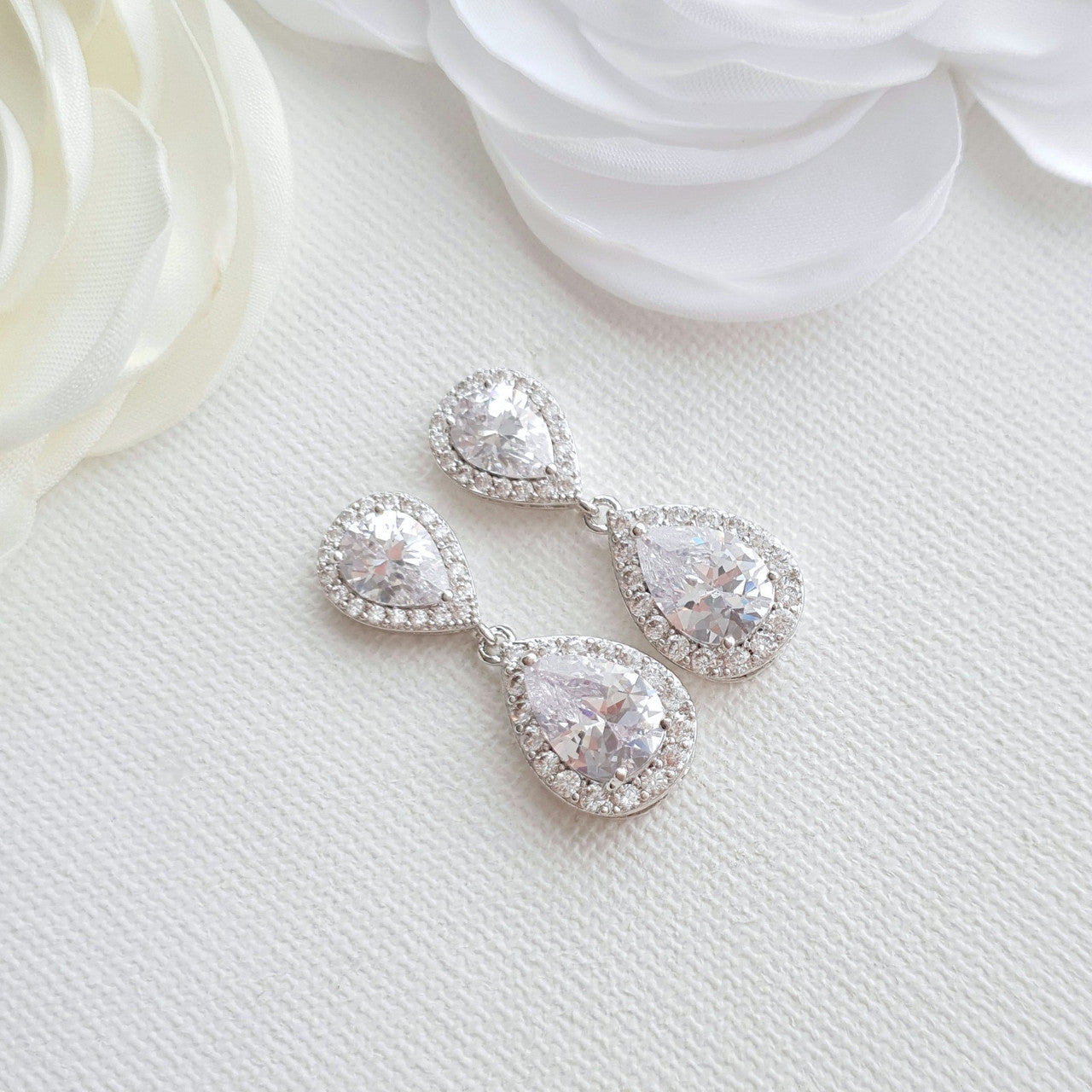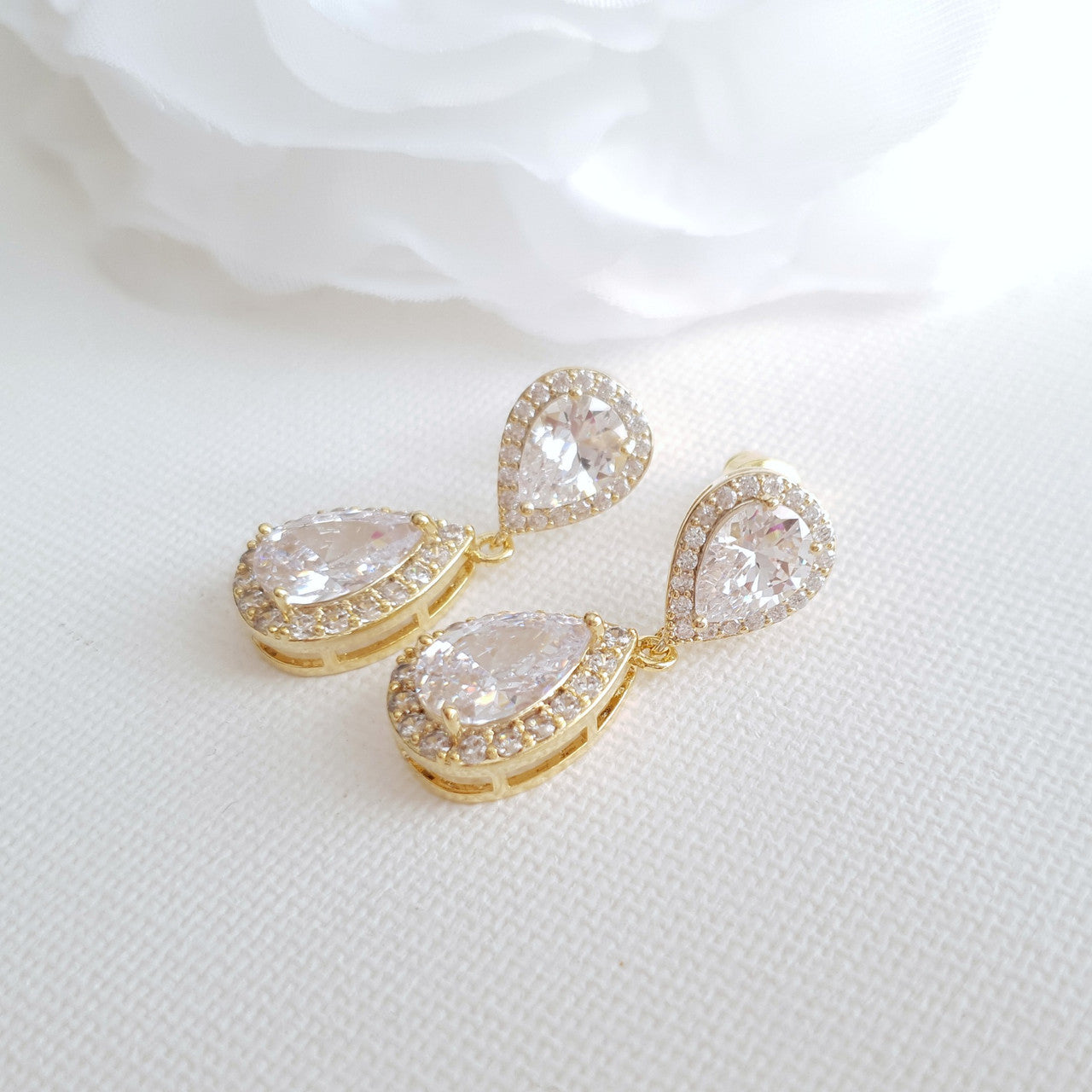 Cubic Zirconia Rose Gold Teardrop Earrings for Brides and Bridesmaids.
