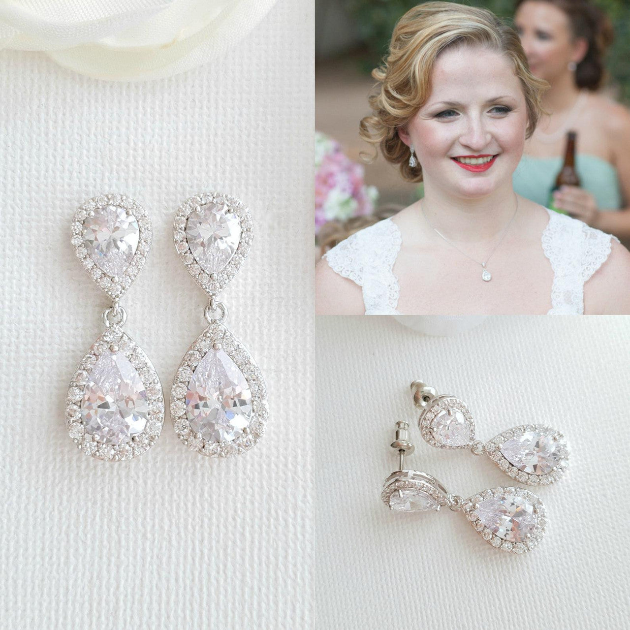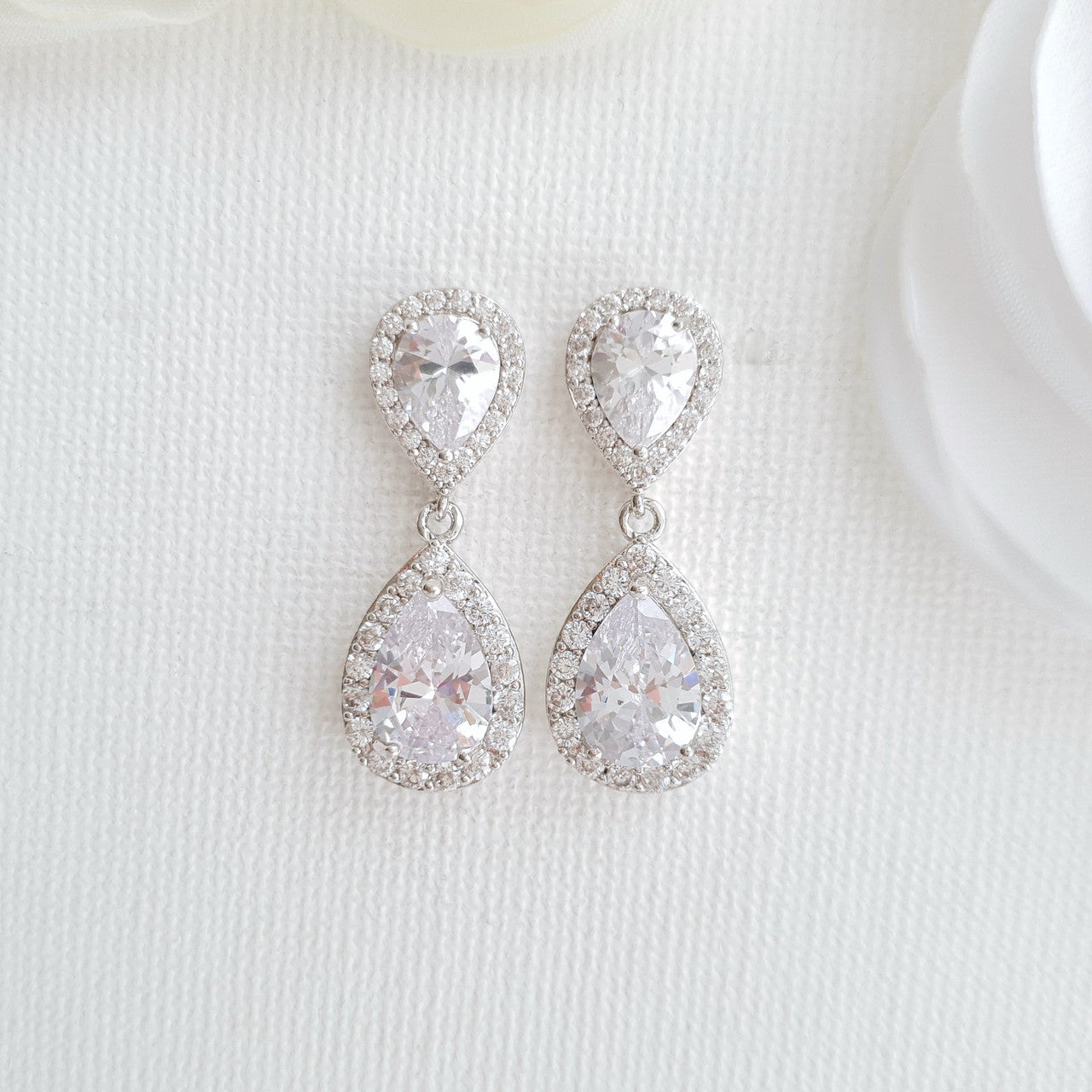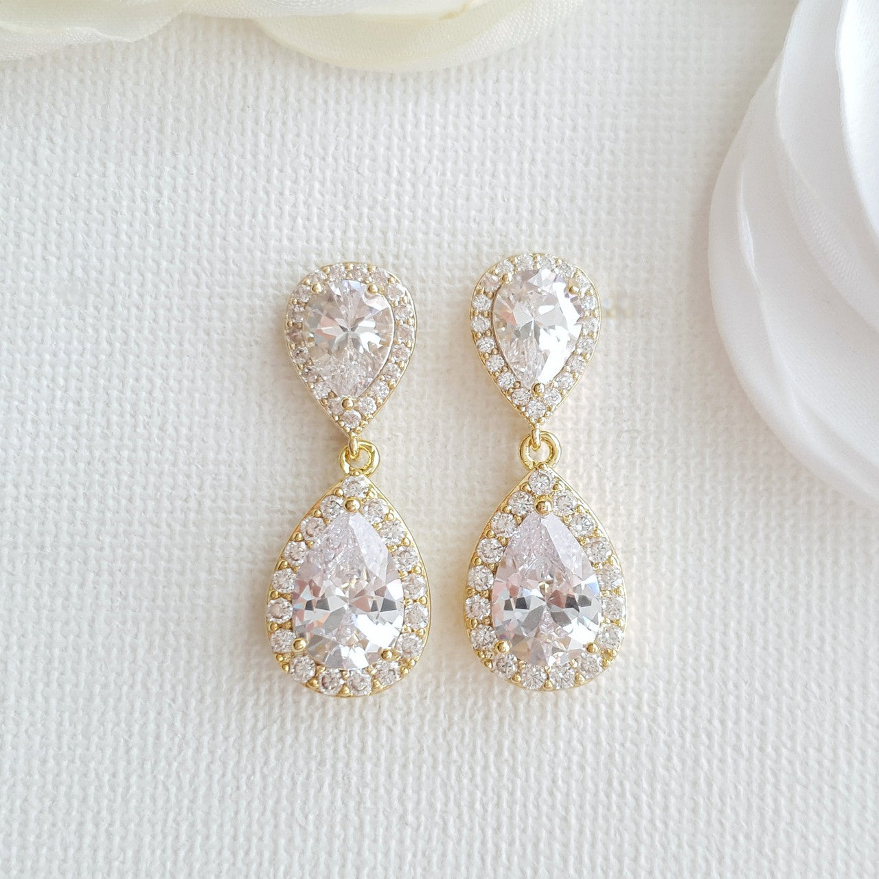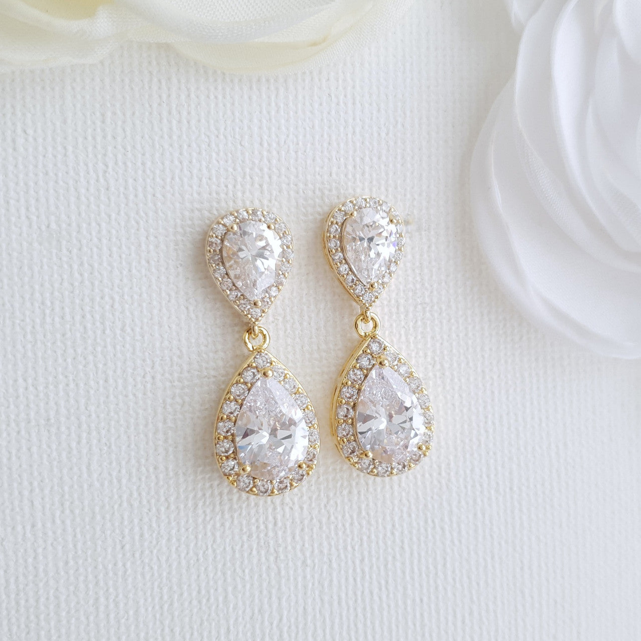 Cubic Zirconia Rose Gold Teardrop Earrings for Brides and Bridesmaids.