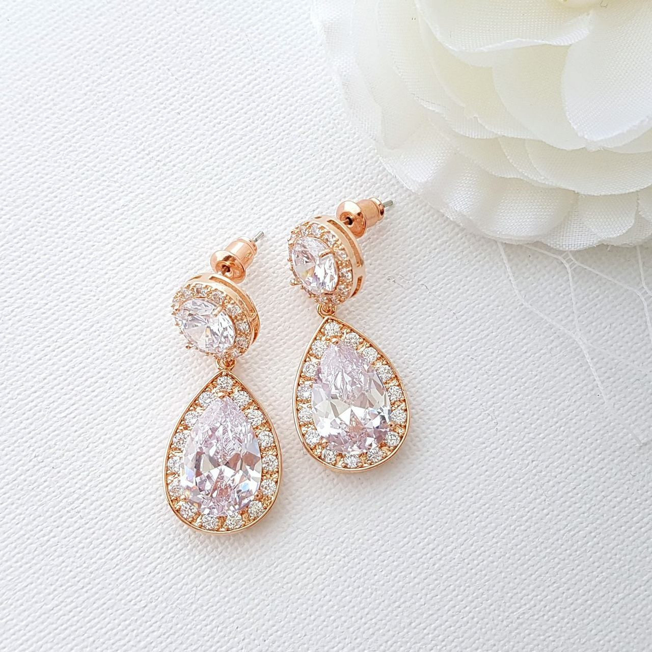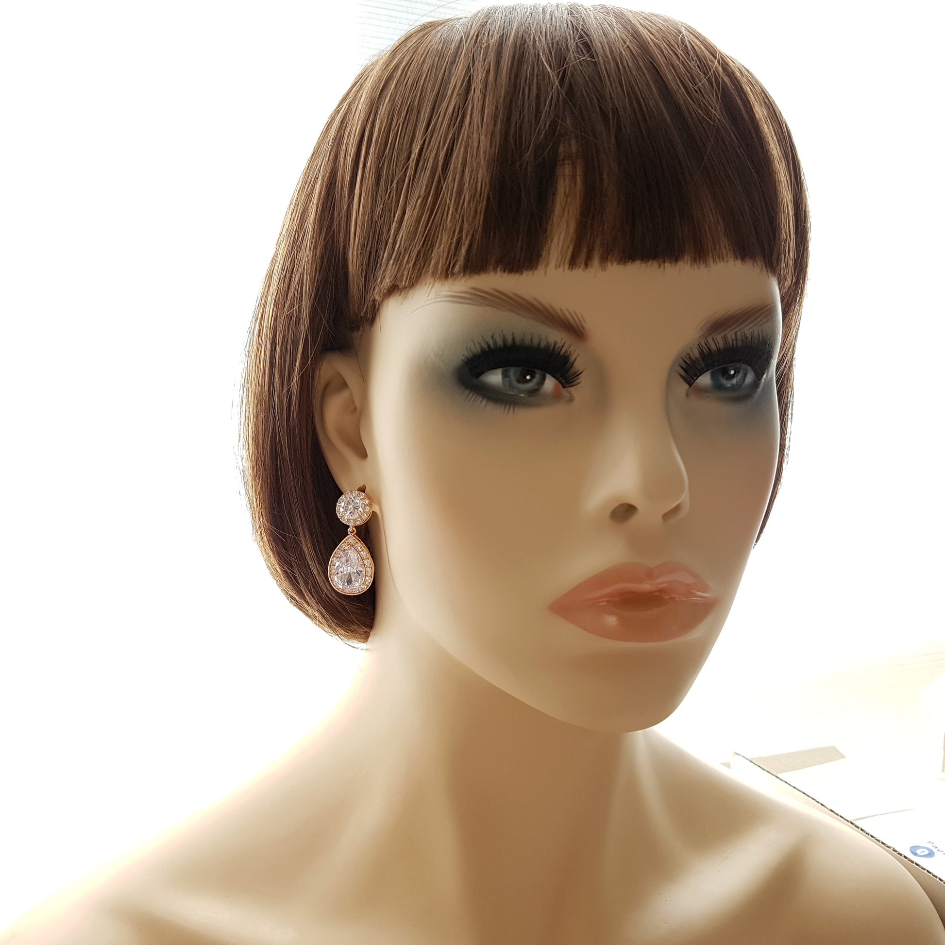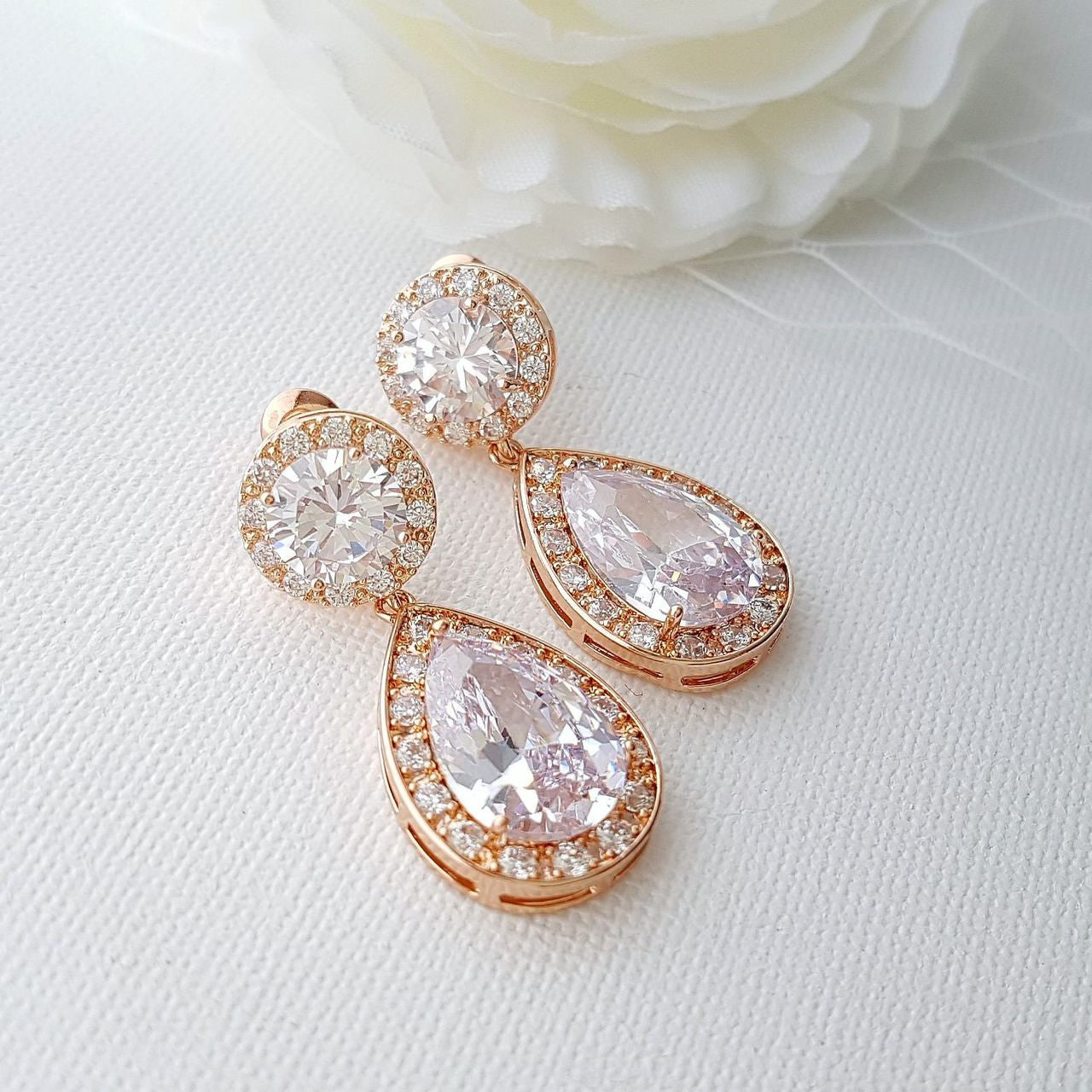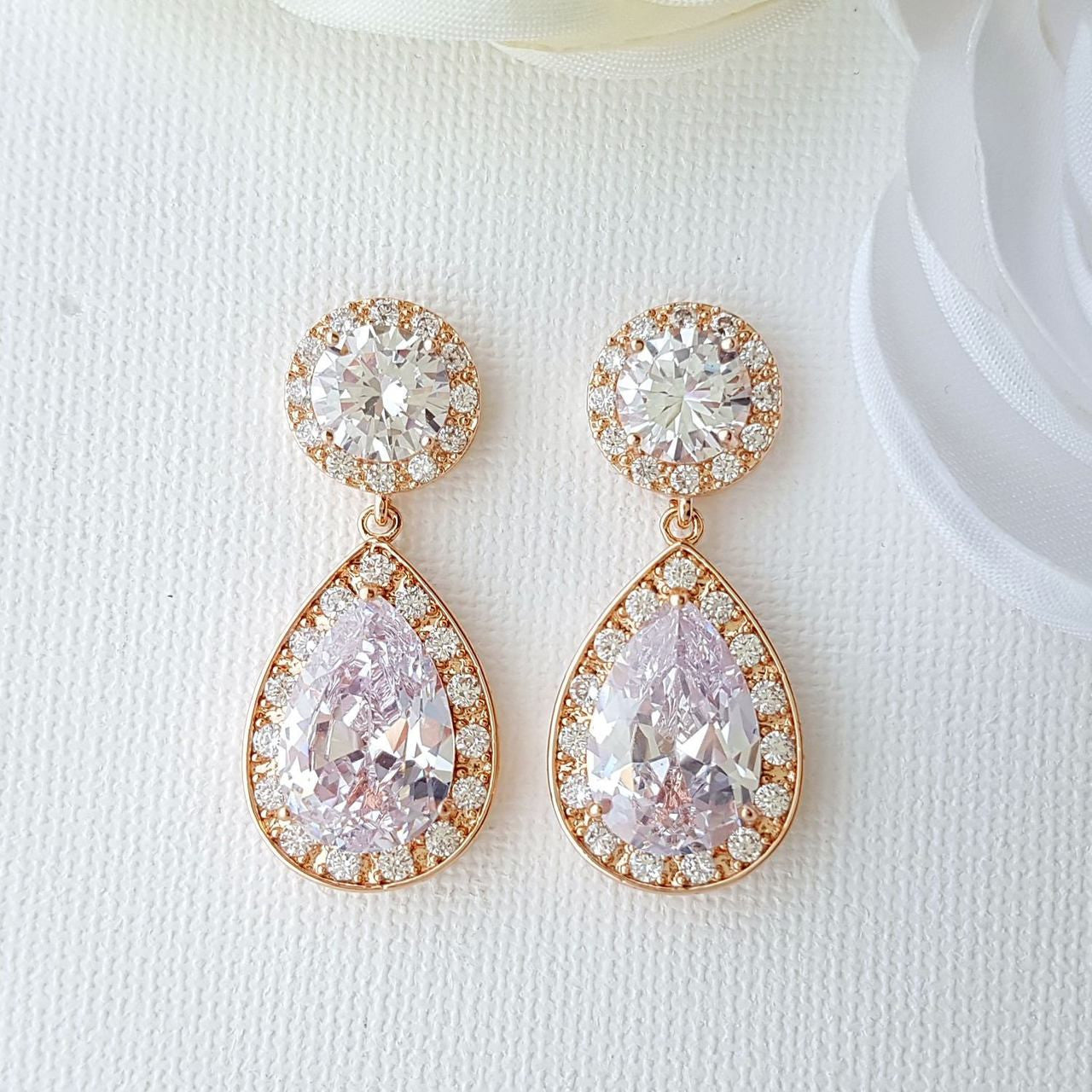 Rose gold Wedding Earrings in Teardrop CZ for Formal and Bridal Wear