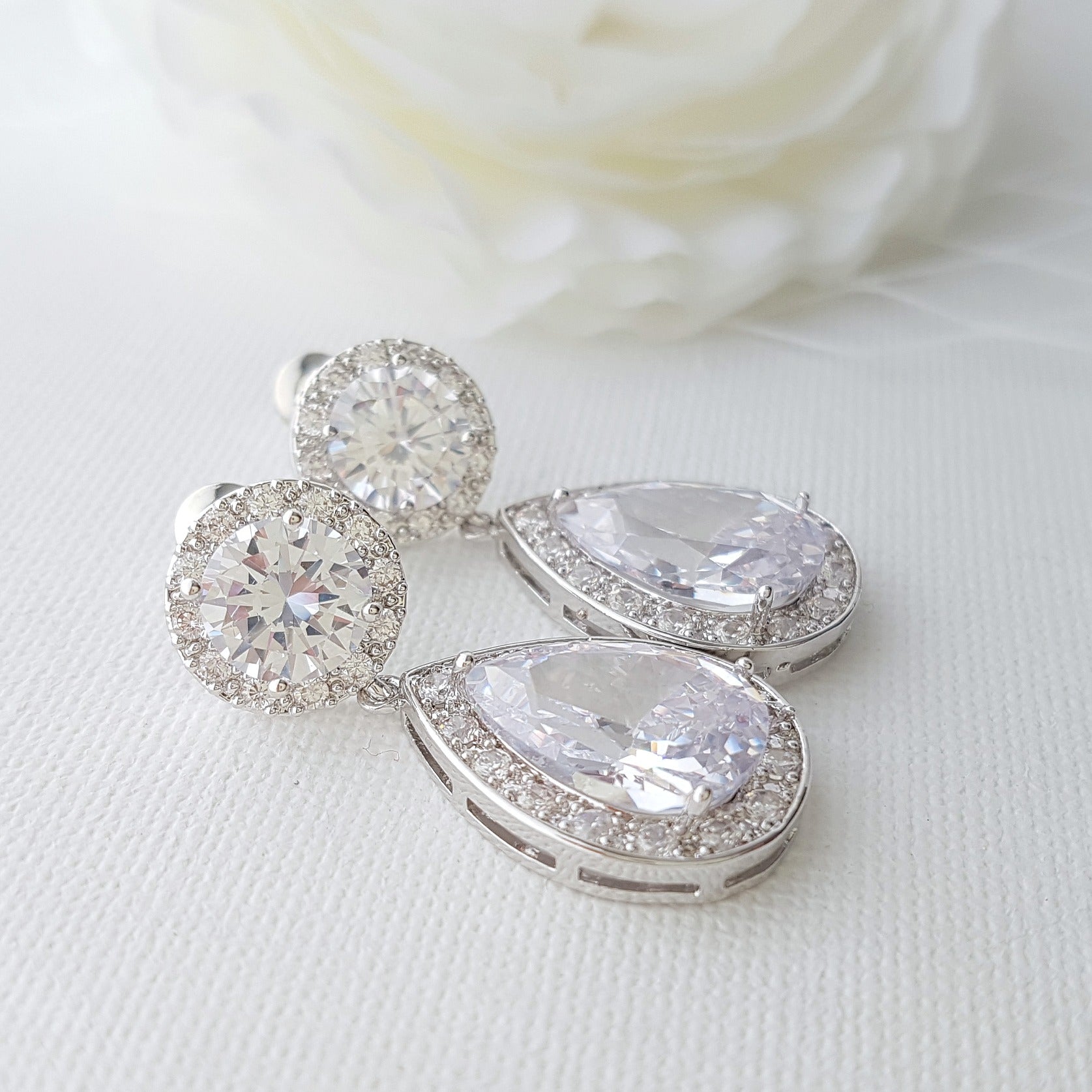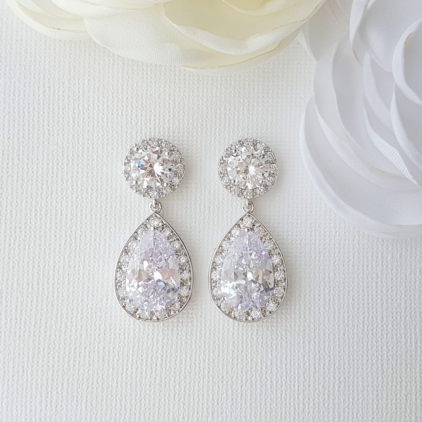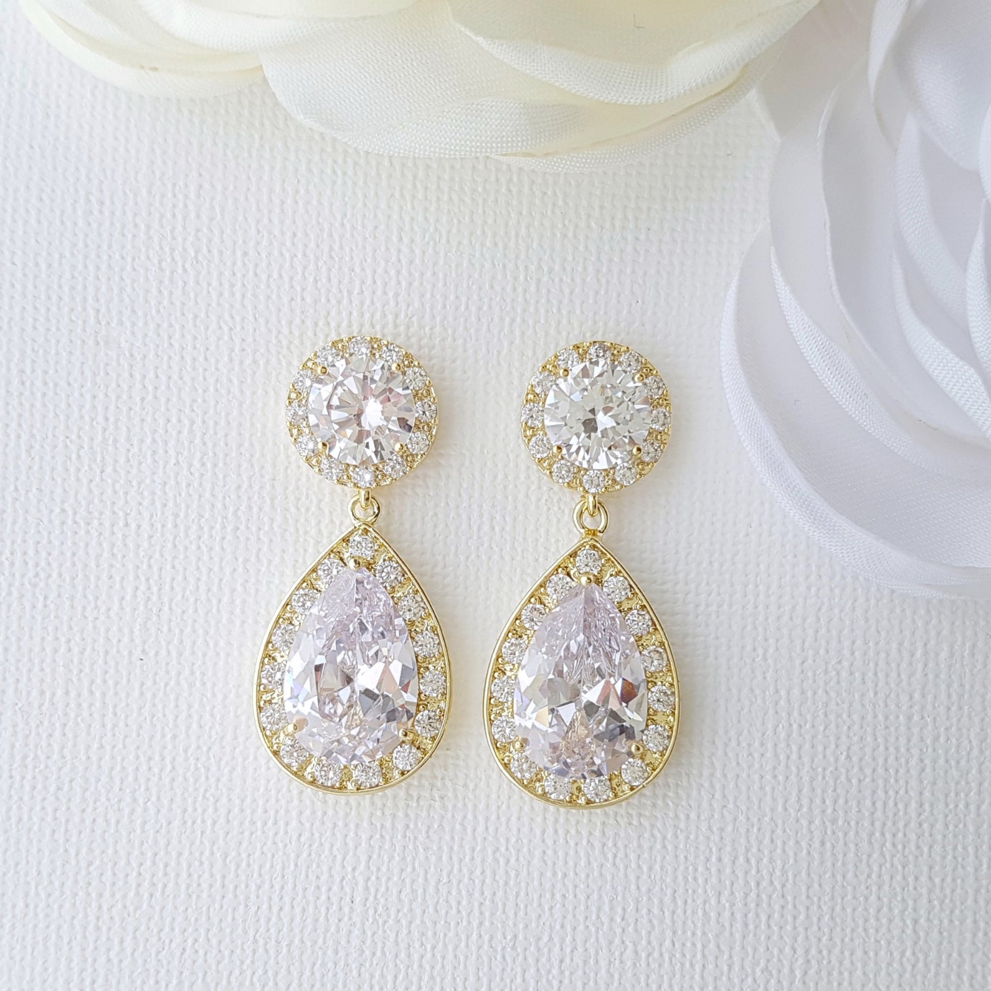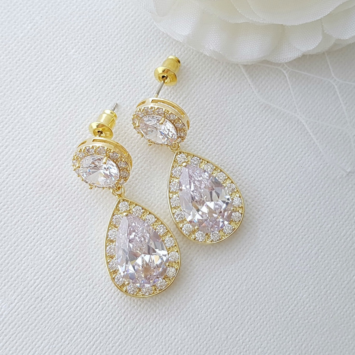 Rose gold Wedding Earrings in Teardrop CZ for Formal and Bridal Wear