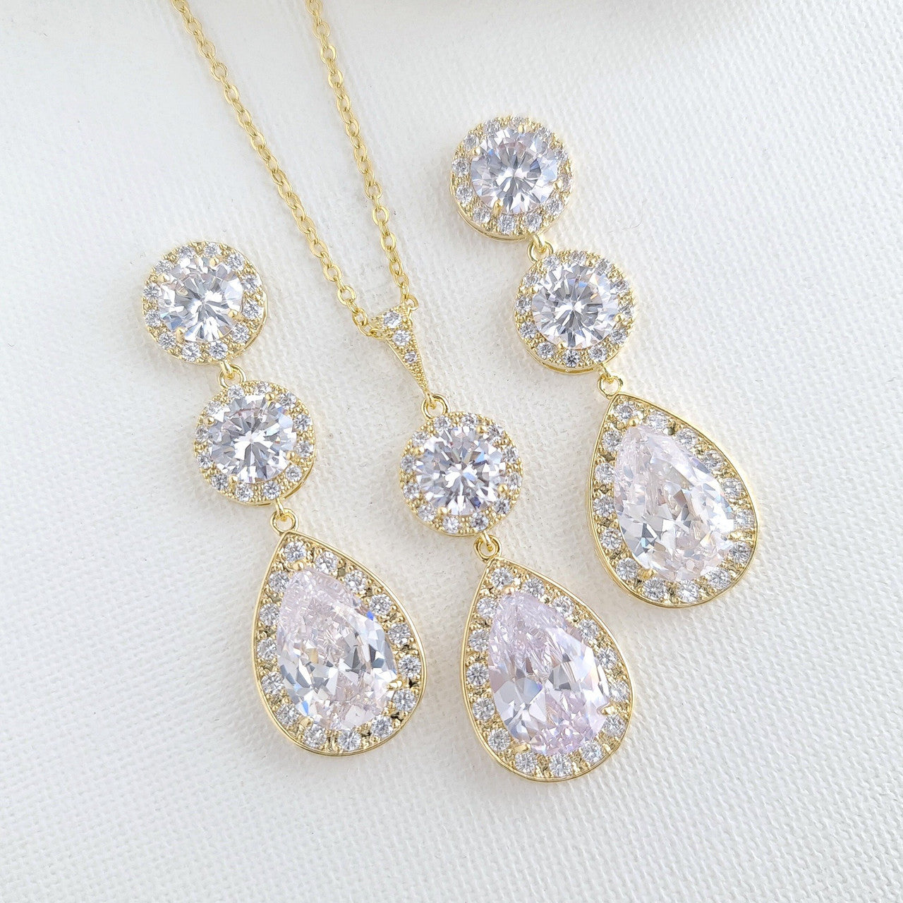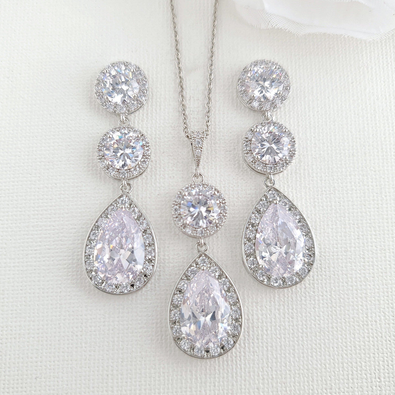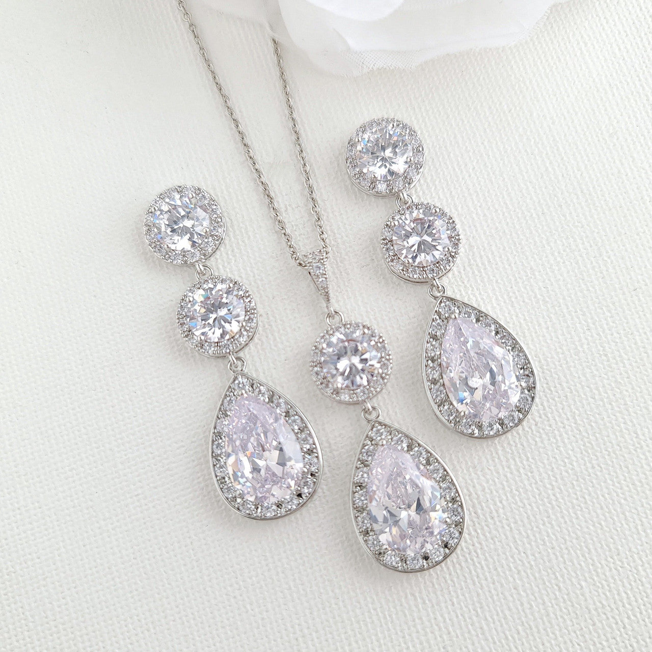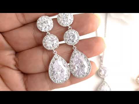 Bride jewellery Set made of Round and Teardrop Cubic Zirconia