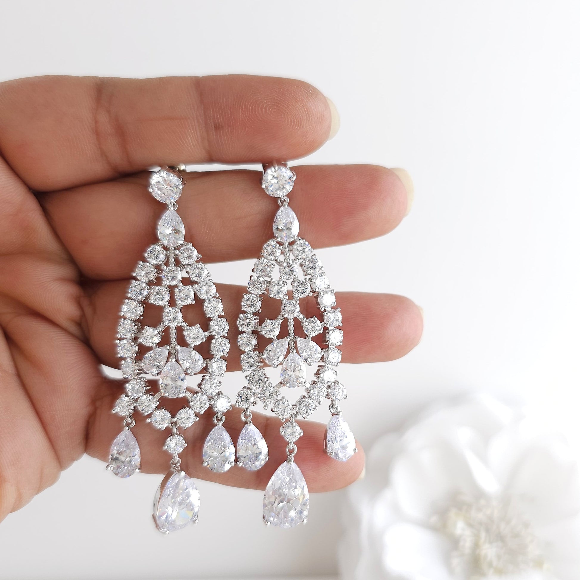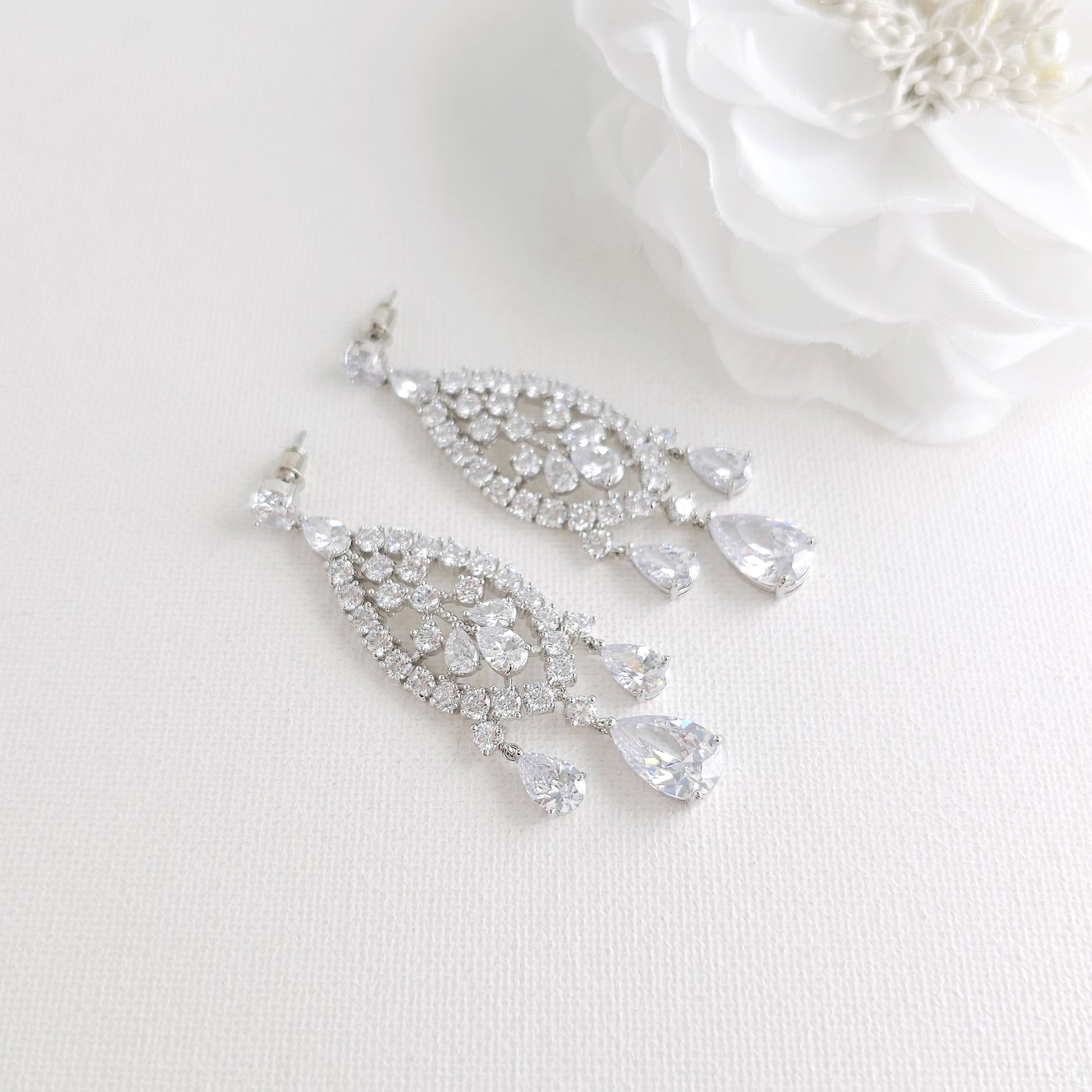 Large Silver Statement Chandelier Earrings for Brides & Woman- Courtney
