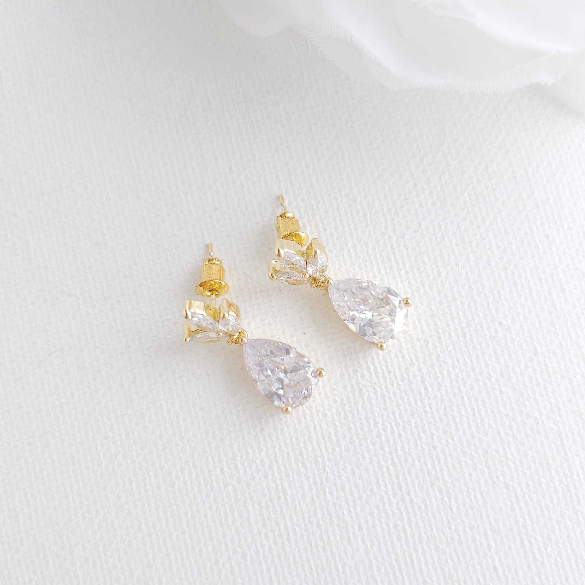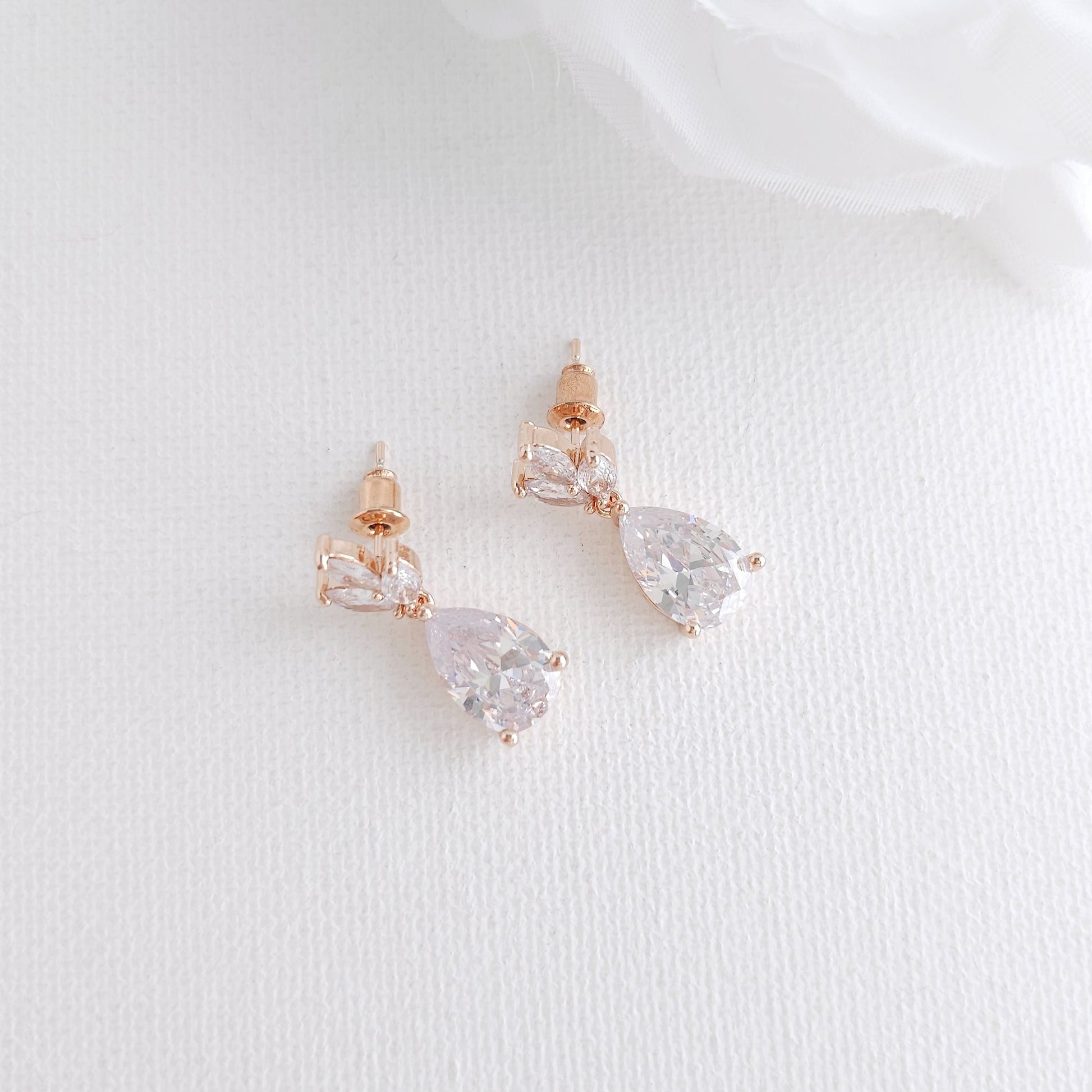 Your simple yet impactful wedding day look can be effortlessly achieved with these small dainty teardrop dangle drop bridal earrings. ( The earrings are also available in rose gold and yellow gold to suit your style)