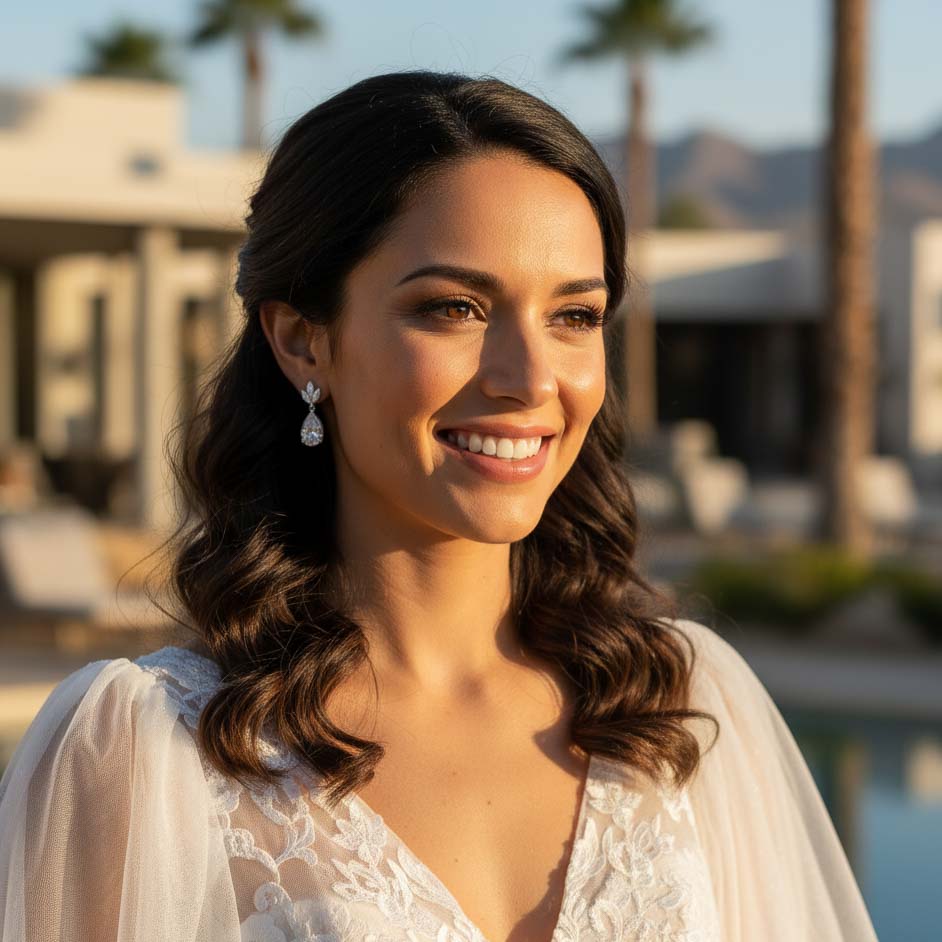 Our Small Bridal Dangle Drop Earrings are the perfect choice for the bride seeking a refined, elegant look on her wedding day. The dangle drop design is specifically tailored for those who desire plenty of sparkle without the bulk of oversized jewellery. These dainty earrings are truly comfortable, offering all-day comfort while ensuring you radiate brilliance from the ceremony to the last dance.