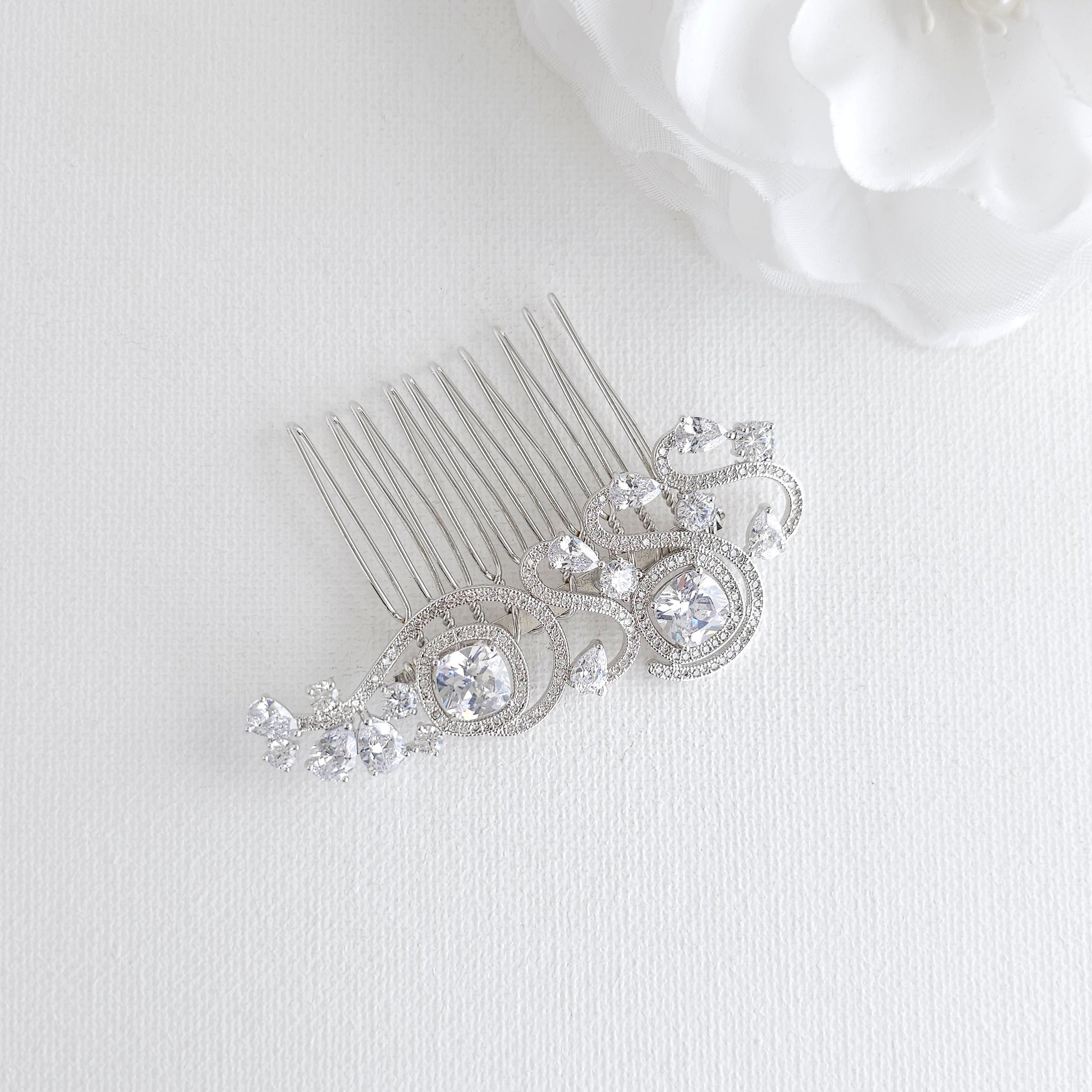 Rose Gold: Plated in a beautiful Rose Gold tone, this comb adds a warm, blush glow that perfectly matches rose gold engagement rings and soft bridal palettes.