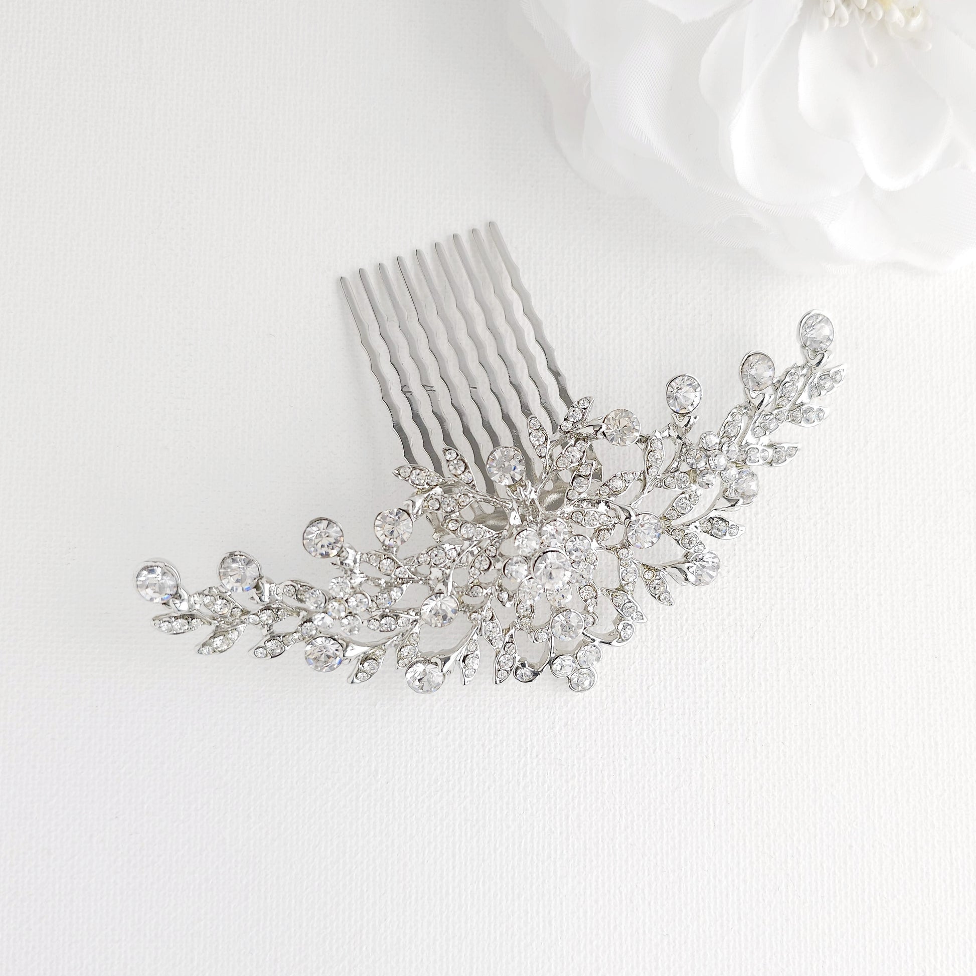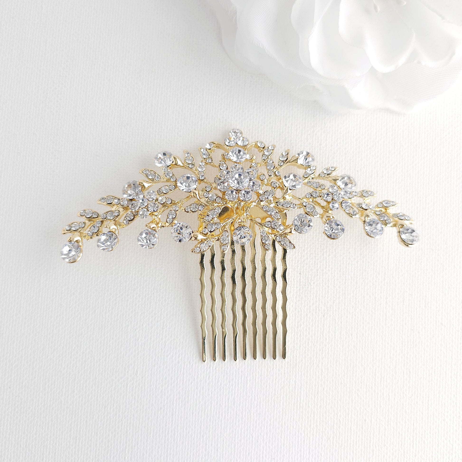 Sparkling Floral & Leaf Crystal Bridal Hair Comb | Gold, Rose Gold & Silver - Kelly