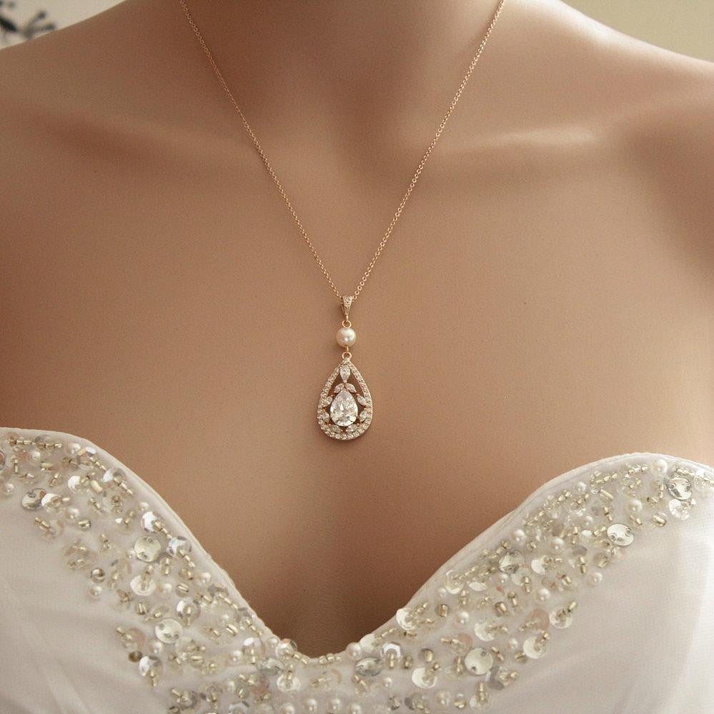 A lovely teardrop pendant for weddings is made with rose gold and pearl. A delicately crafted pendant is made of cubic zirconia is sparkling. If you are a bride, bridesmaid, or woman looking for a simple necklace yet a refined look then these necklaces are just gorgeous not just for the wedding, but with any outfit after the wedding.