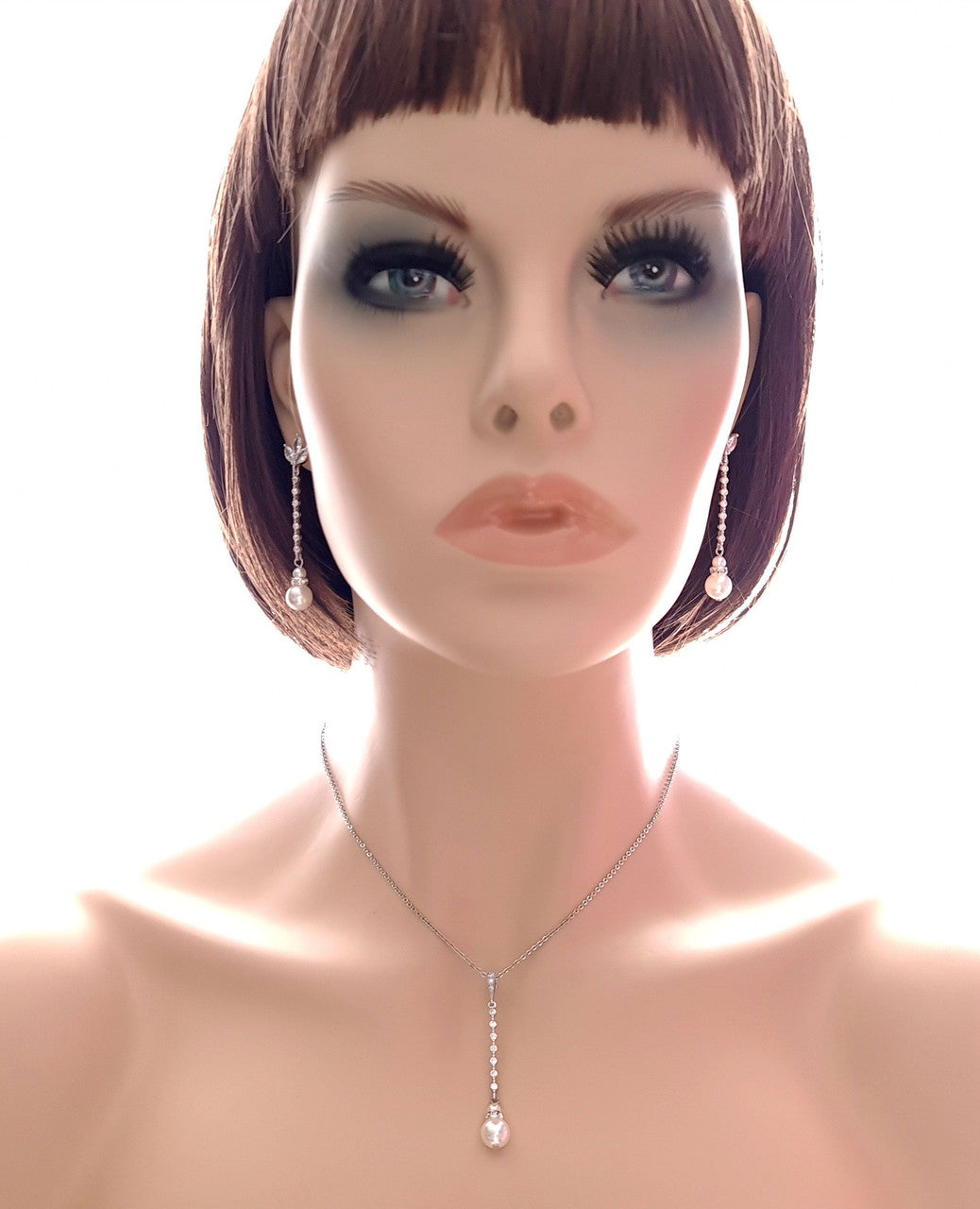 A beautiful pair of thin dangle drop pearl earrings in silver finish is beautiful on brides, bridesmaids. A versatile pair of earrings can be used on several occasions after the wedding with many outfits.