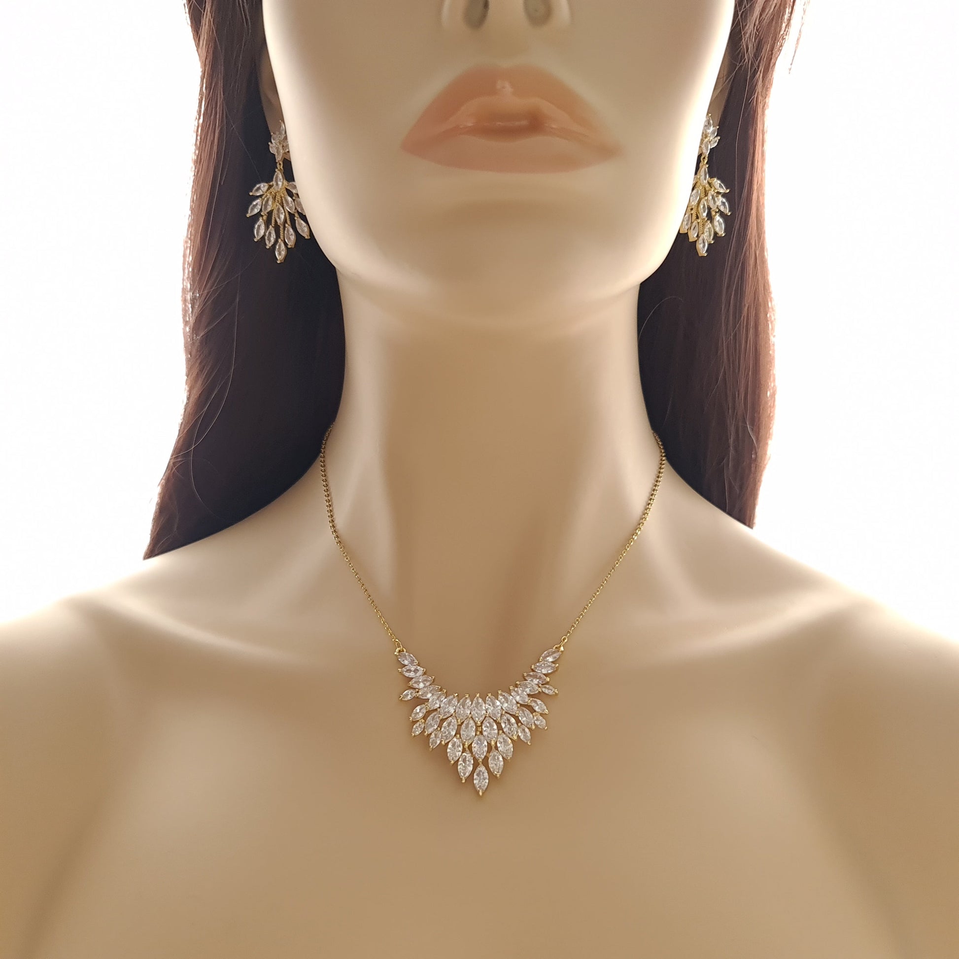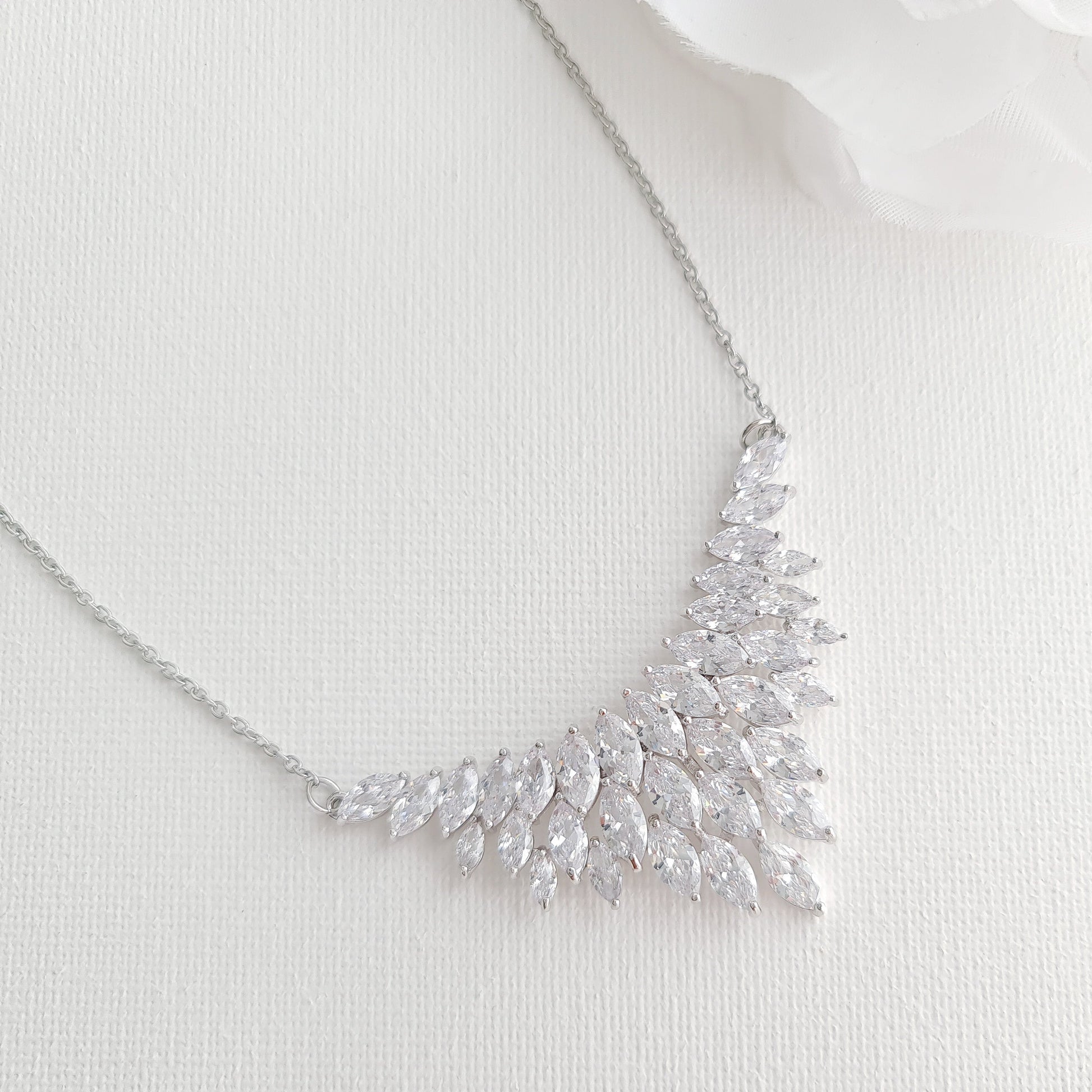 Discover our exquisite V-shaped marquise cluster pendant necklace, a perfect accessory for weddings, formal events, proms, and special occasions, the necklace is designed to elevate your neckline and make a statement with your outfits.