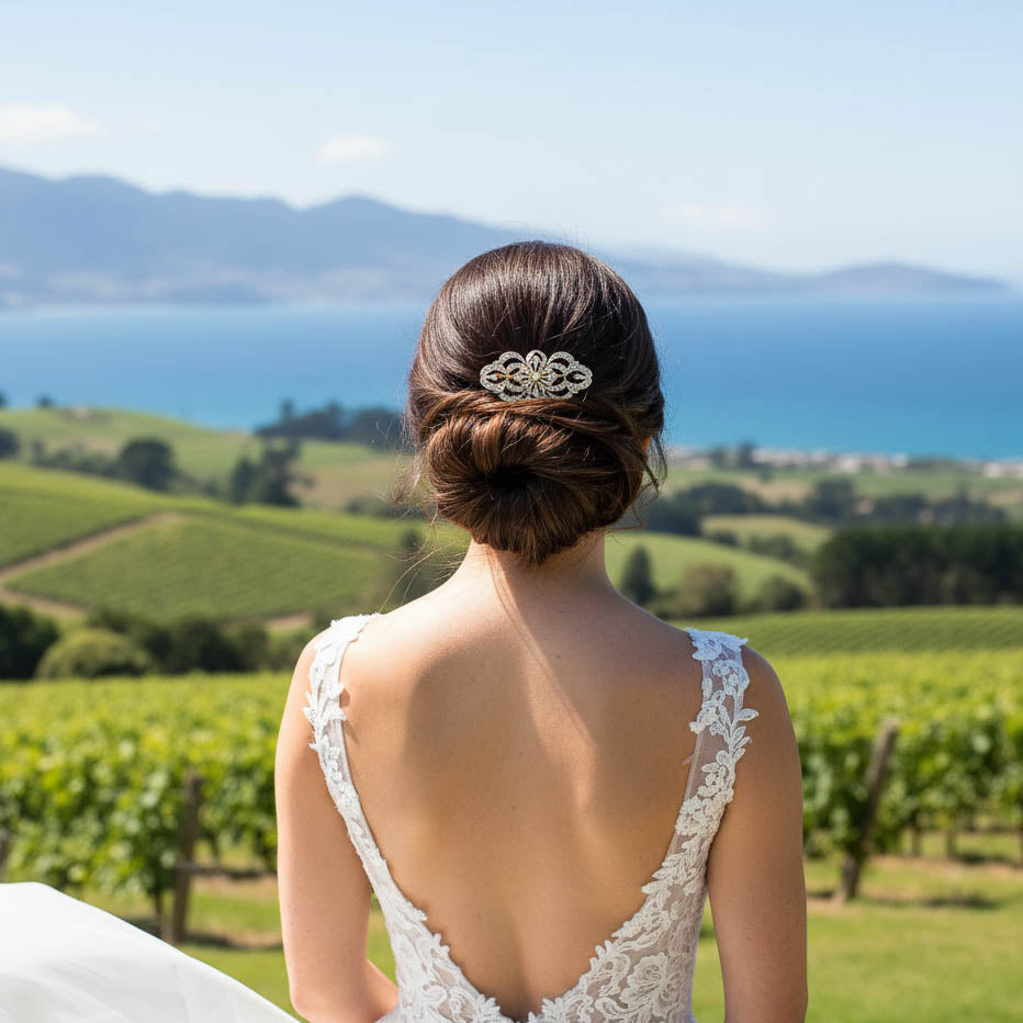 Versatile Use: Its petite size is excellent for tucking into a traditional bridal updo, enhancing a side-swept hairstyle, or being used as a reliable, discreet piece to secure a veil without adding bulk.
