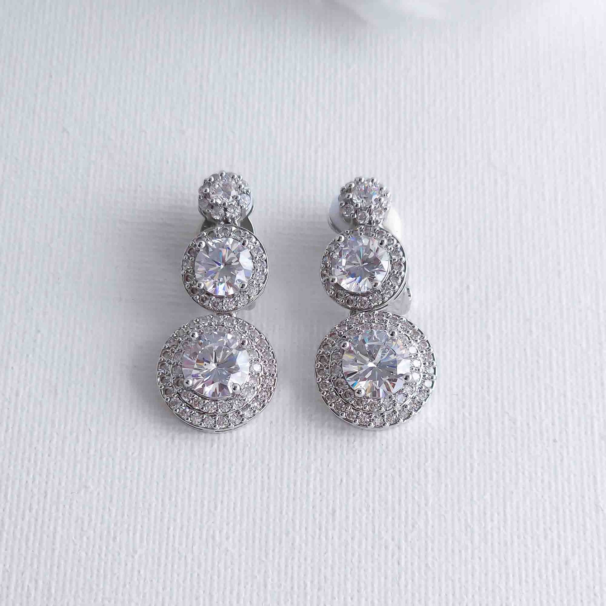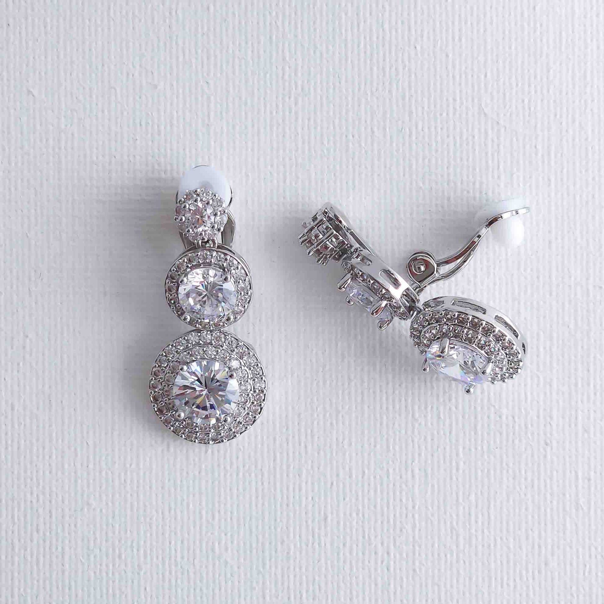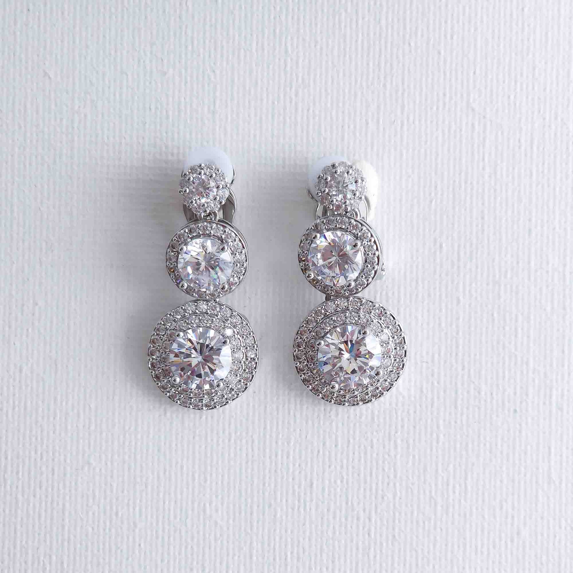 Discover Sparkling Halo Clip-On Earrings For Brides with 3 Round CZ Stones